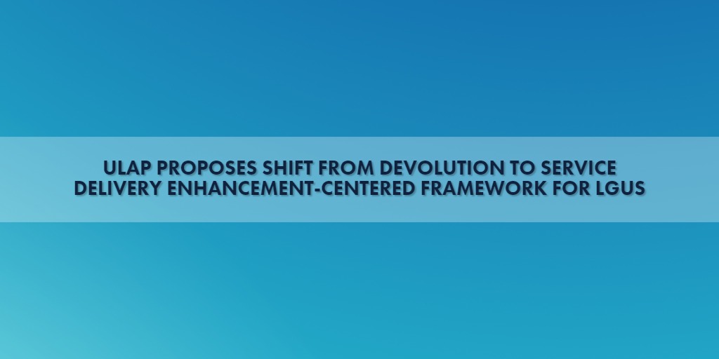 ULAP PROPOSES SHIFT FROM DEVOLUTION TO SERVICE DELIVERY ENHANCEMENT-CENTERED FRAMEWORK FOR LGUS