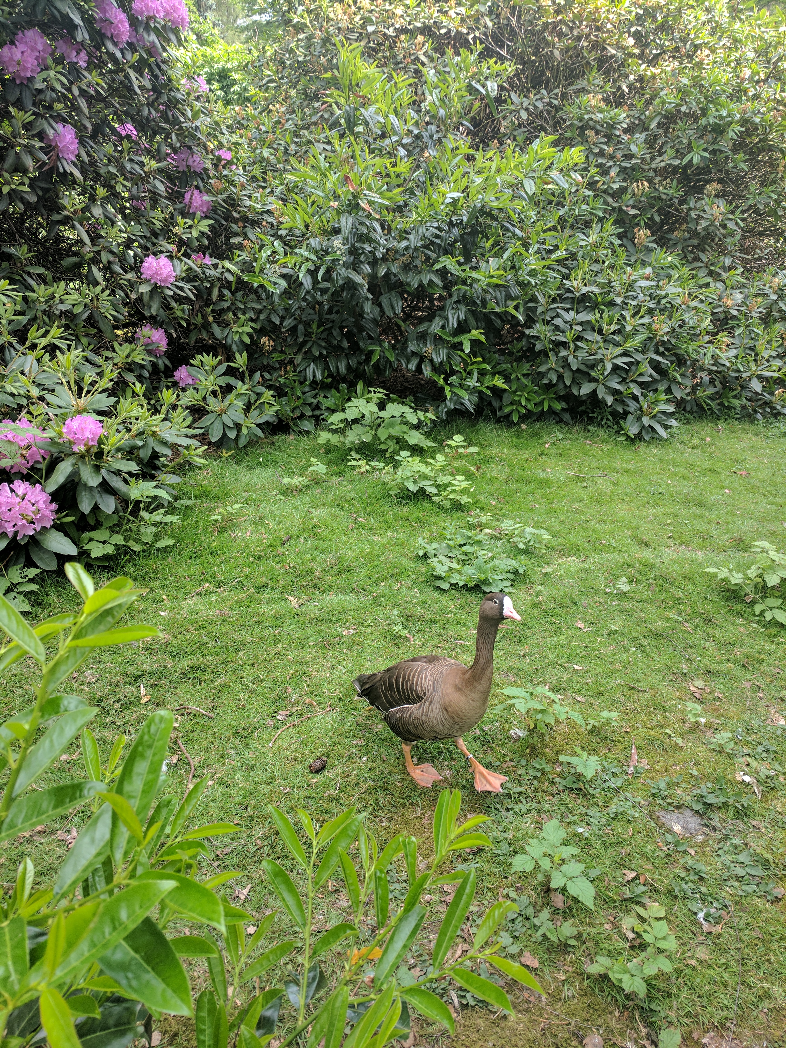 My heart rate jumped a bit - I'm not great with animals - but this was excellent. The pair of them just happily stood on me, walked up and down a bit, had a bit of a chat, and it was great. But then I had the same problem as Helen, not knowing how to get rid of them. Thankfully a reticent looking German man with his girlfriend had been watching, so I gestured for him to hold his arm out and offloaded them. Tschuss!