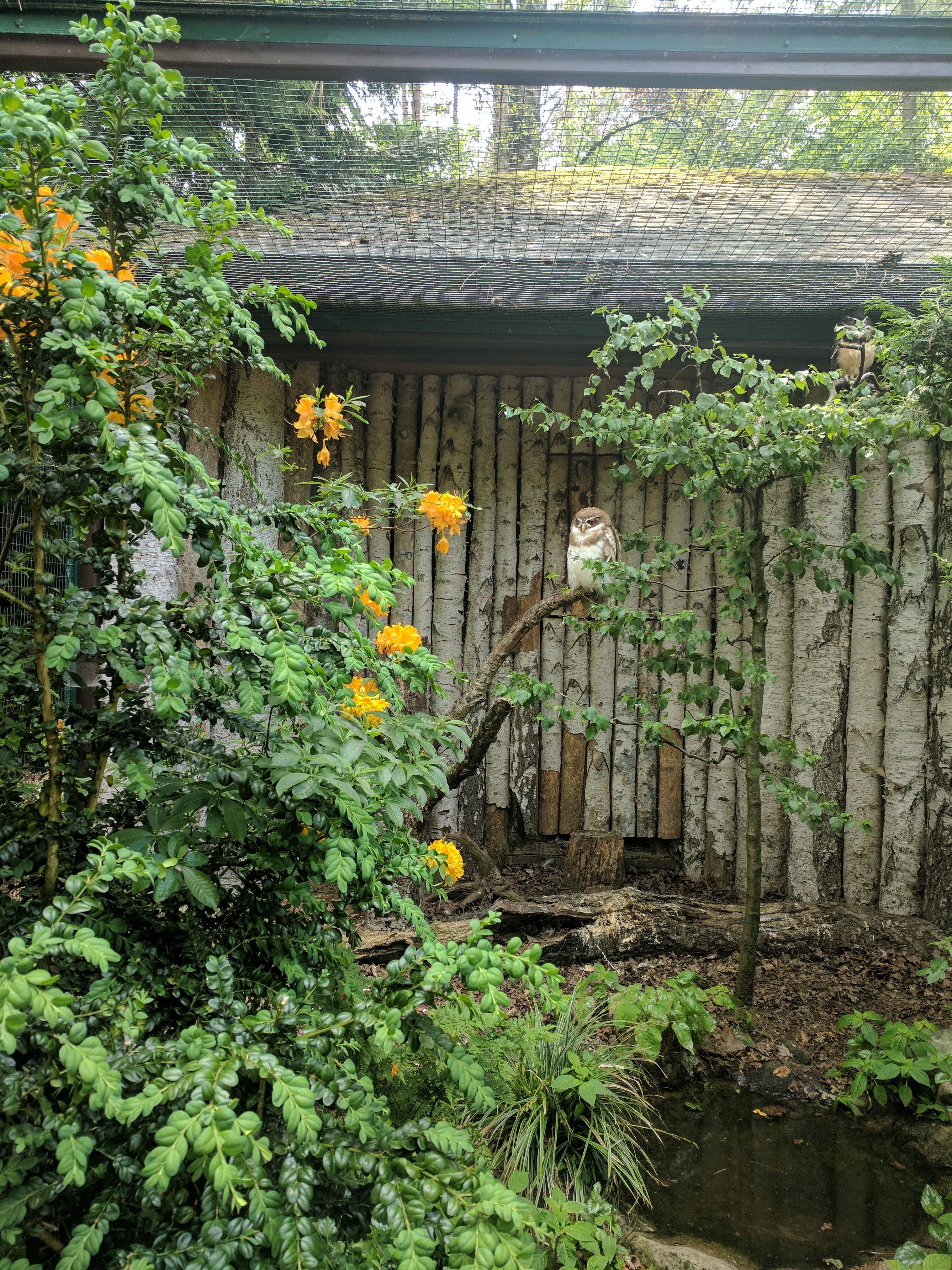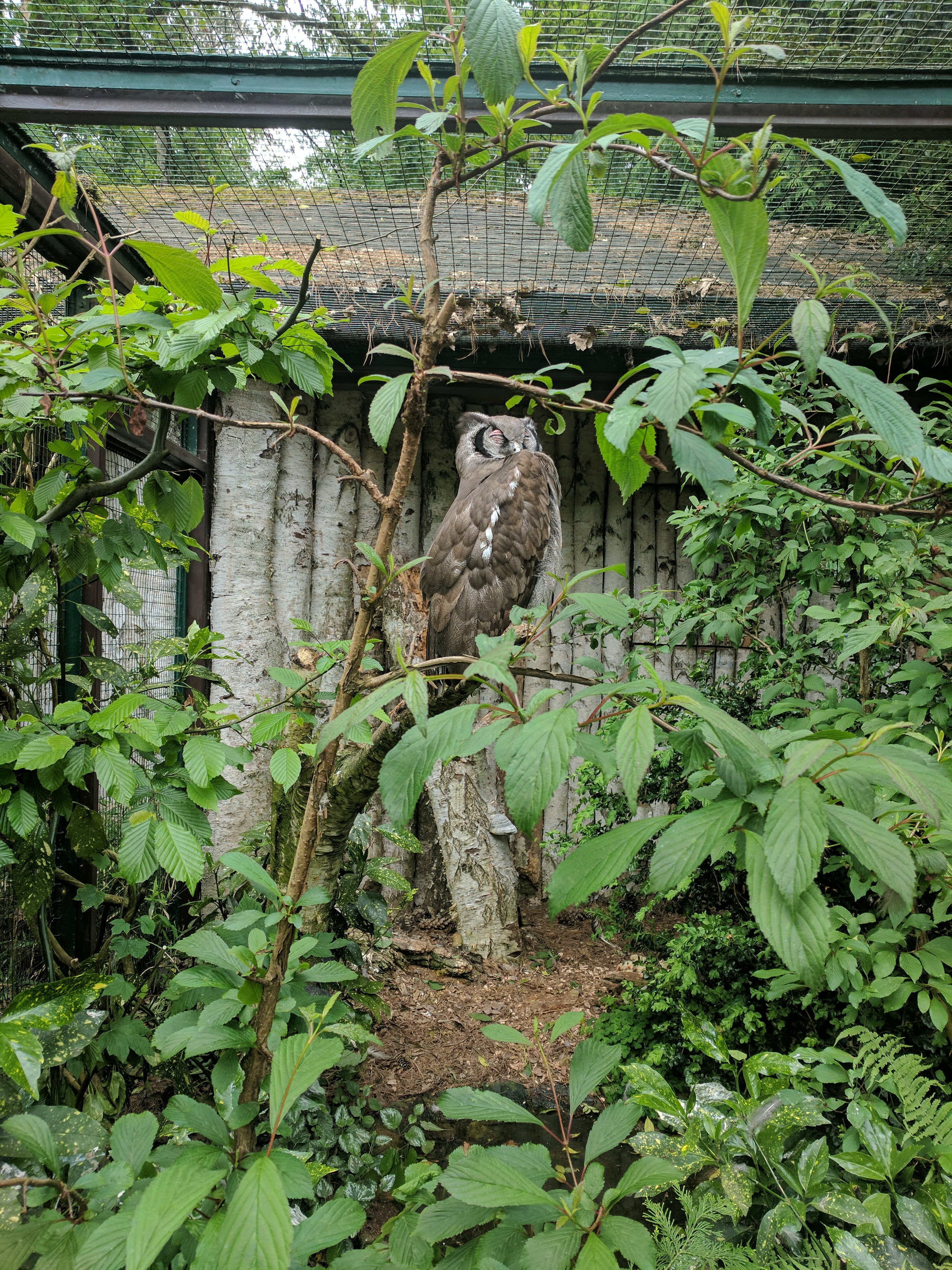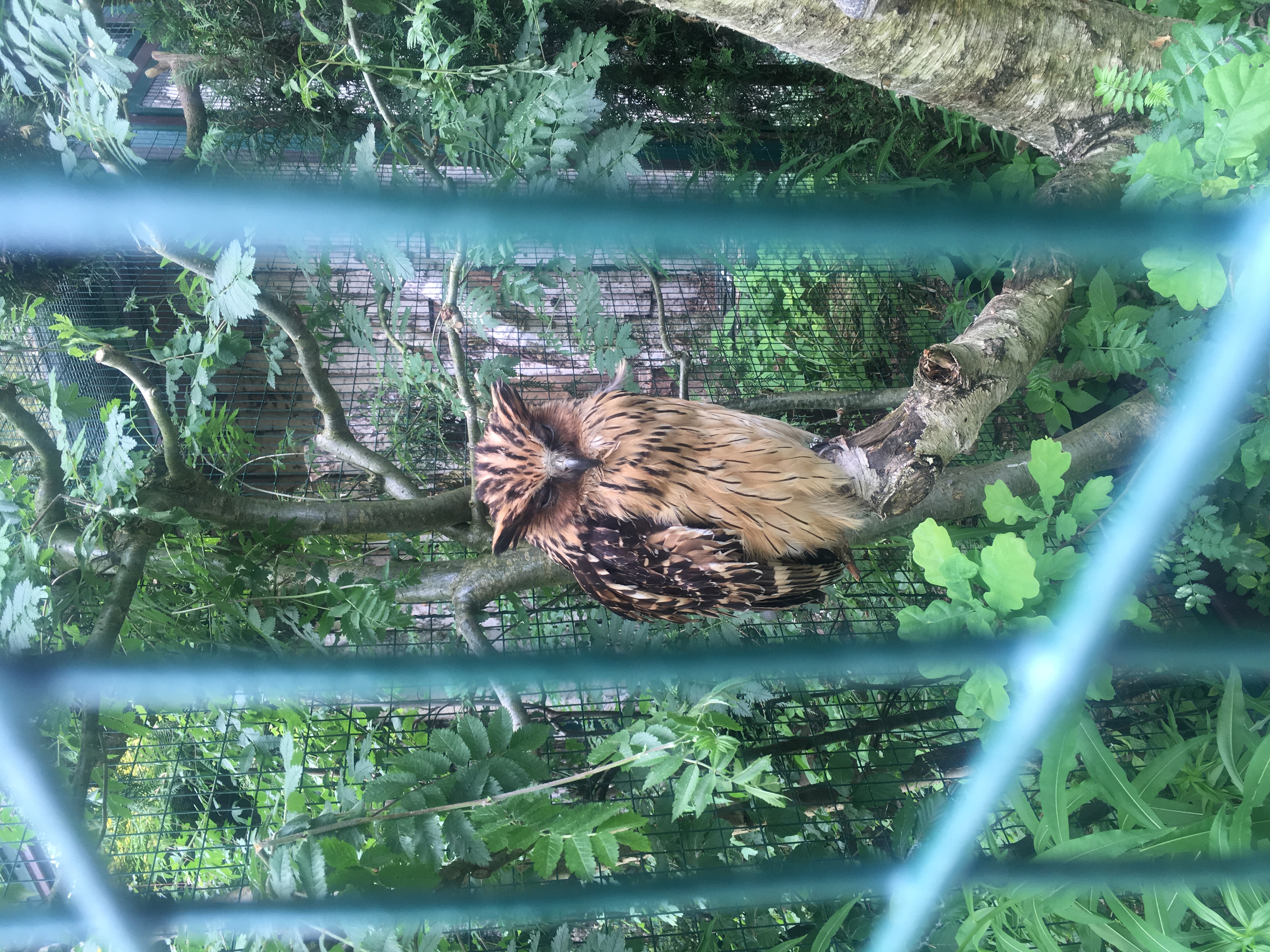 The owl castle itself is a fun building, but inside very few of the birds were out and about and visible, or at least in a position where we could take a shot. There were a couple of owls snuggling up together at the front of one cage, which made them the star attraction and we didn't have the patience to wait our turn in order to get close for a pic. The lazy eagles were quite cool.