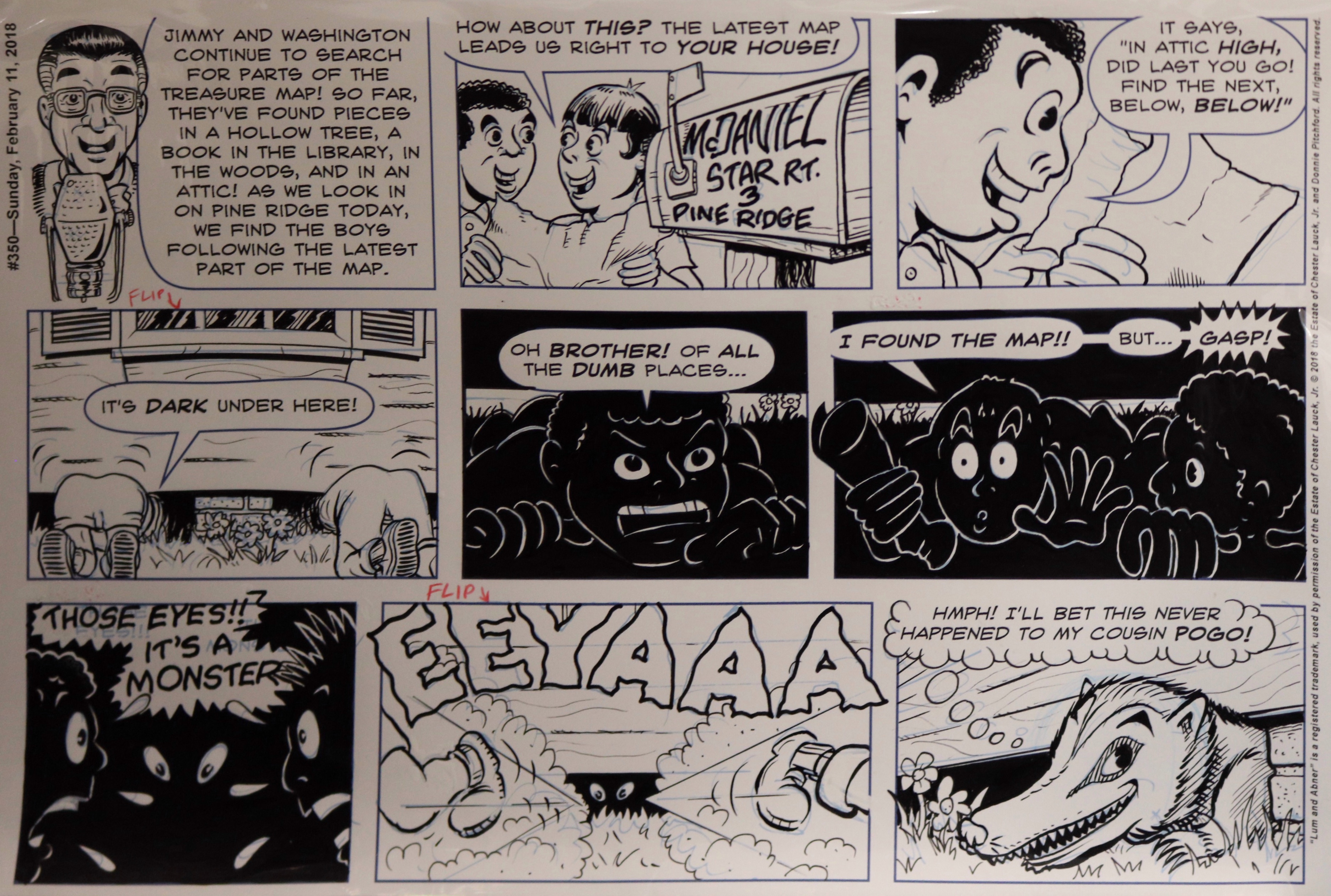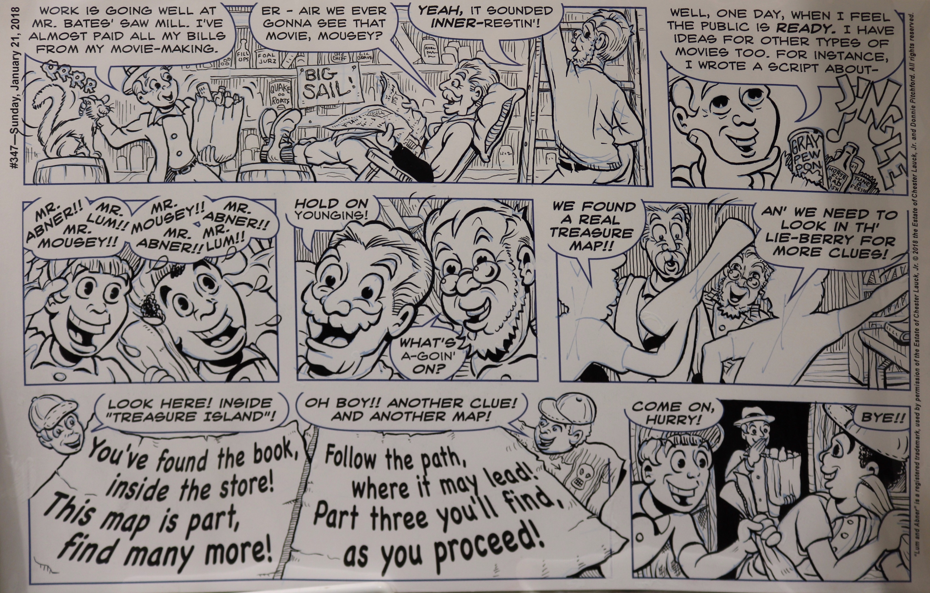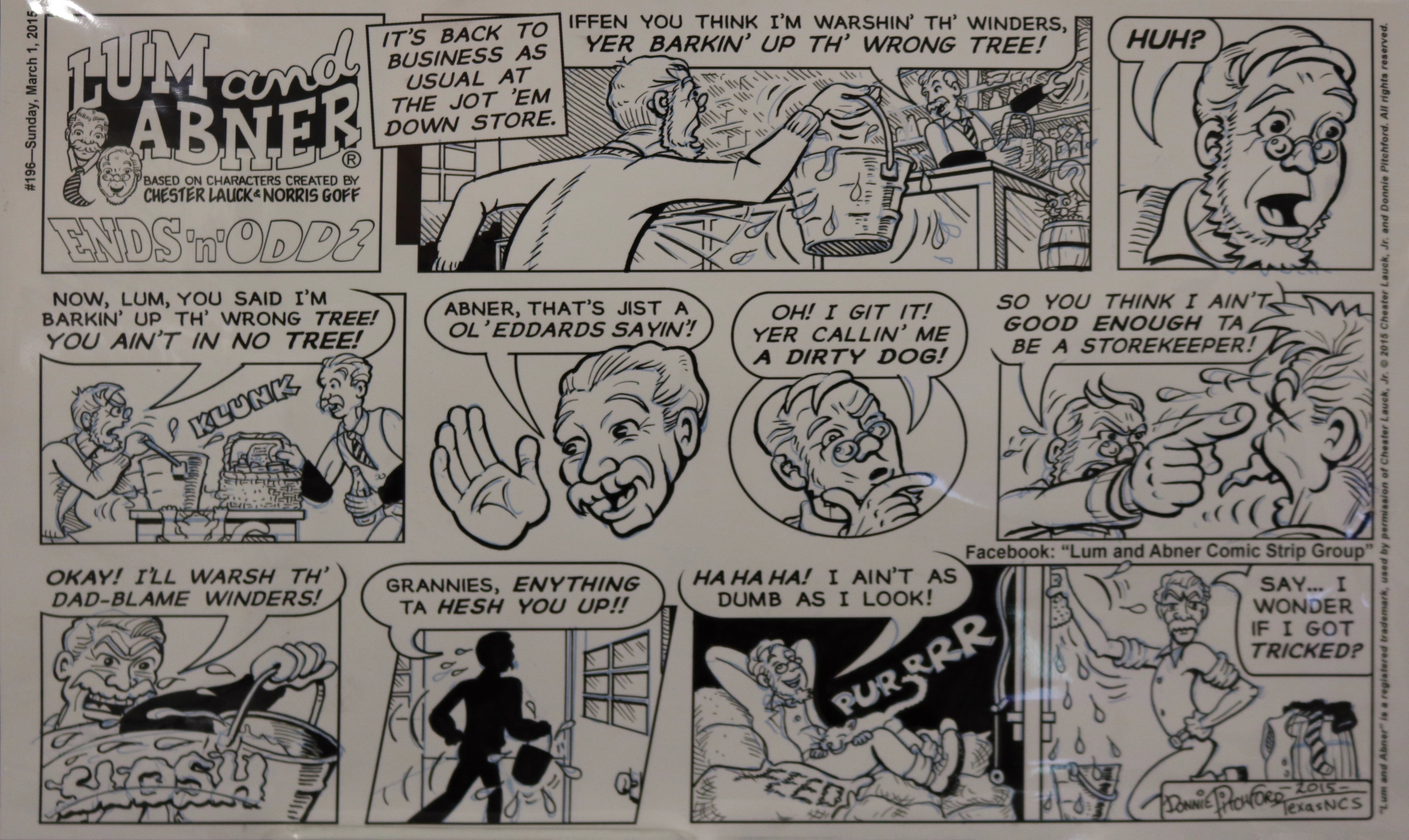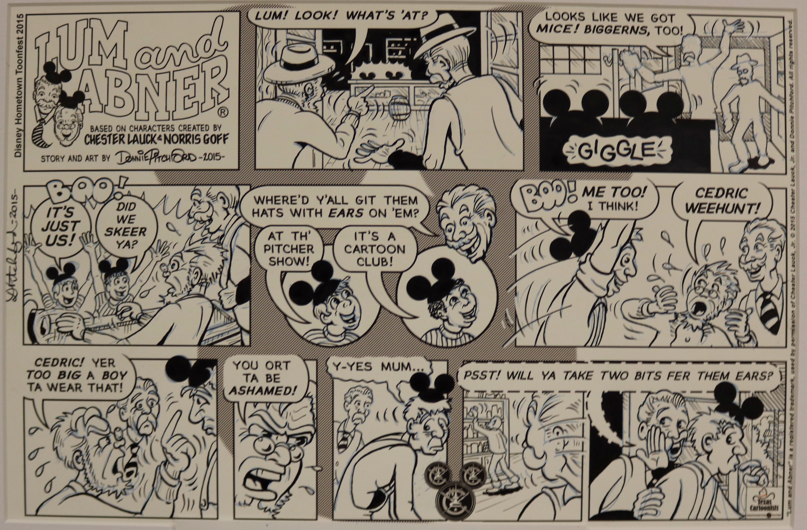 According to Mr. Pitchford, he decided to become a cartoonist at age five. Following his broadcast teaching career, he hit the ground running in 2011 with the Lum and Abner comic strip, based on the classic radio/movie series. With this endeavor he’s been able to work with old friends and mentors George Wildman, Nick Cuti, Hy Eisman, John Rose, and others. Lum and Abner appears each week and includes an audio adaptation for blind friends.