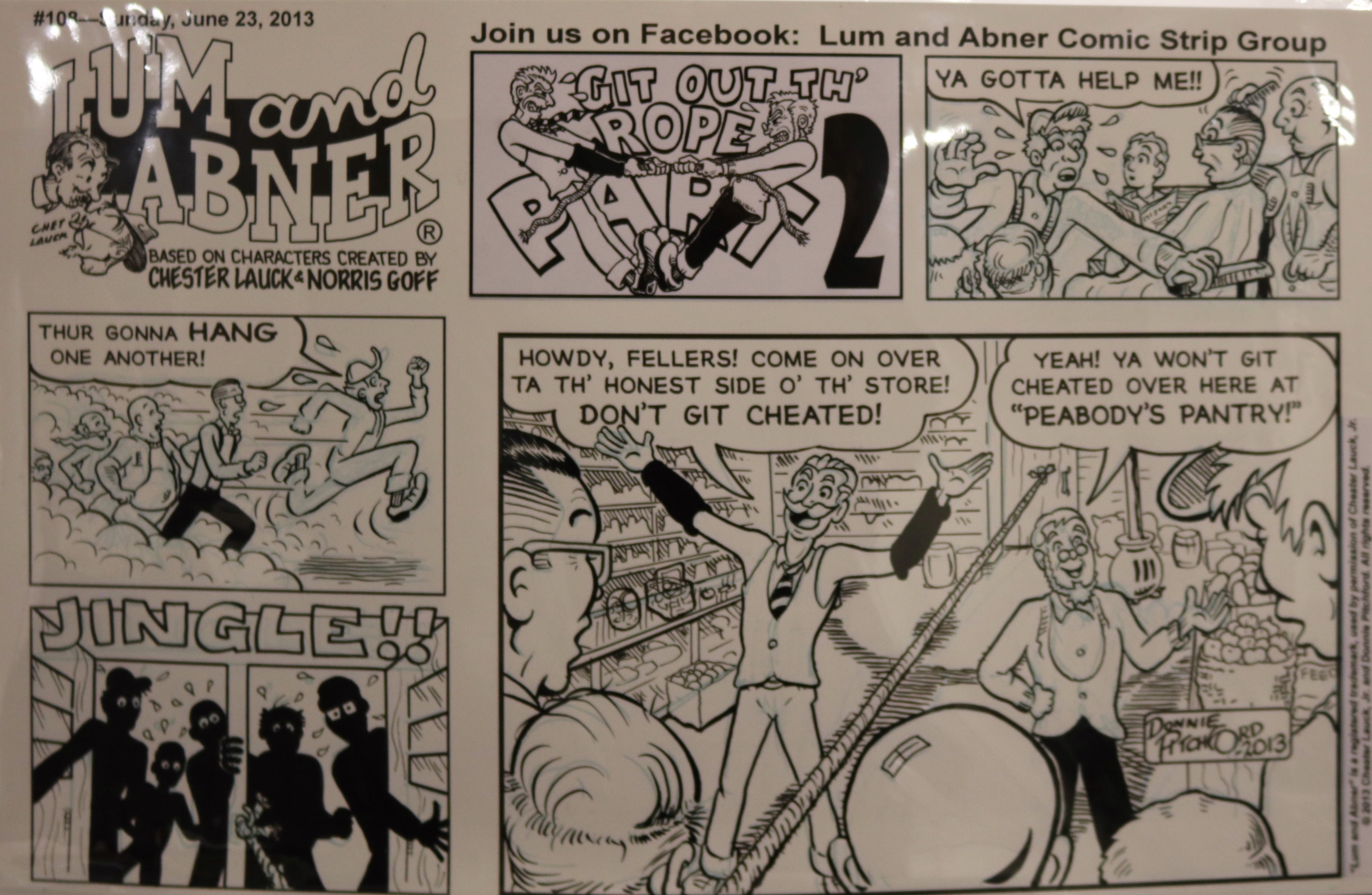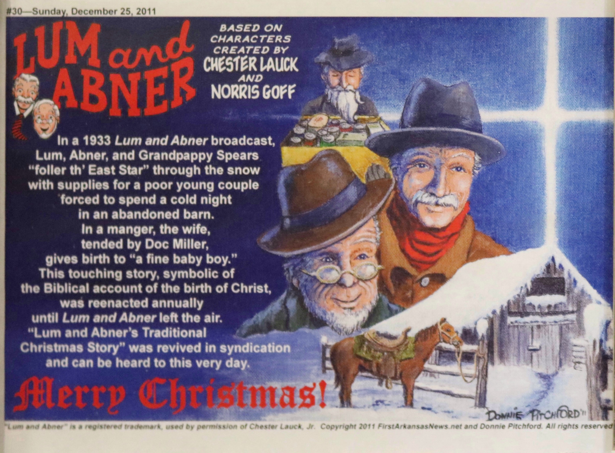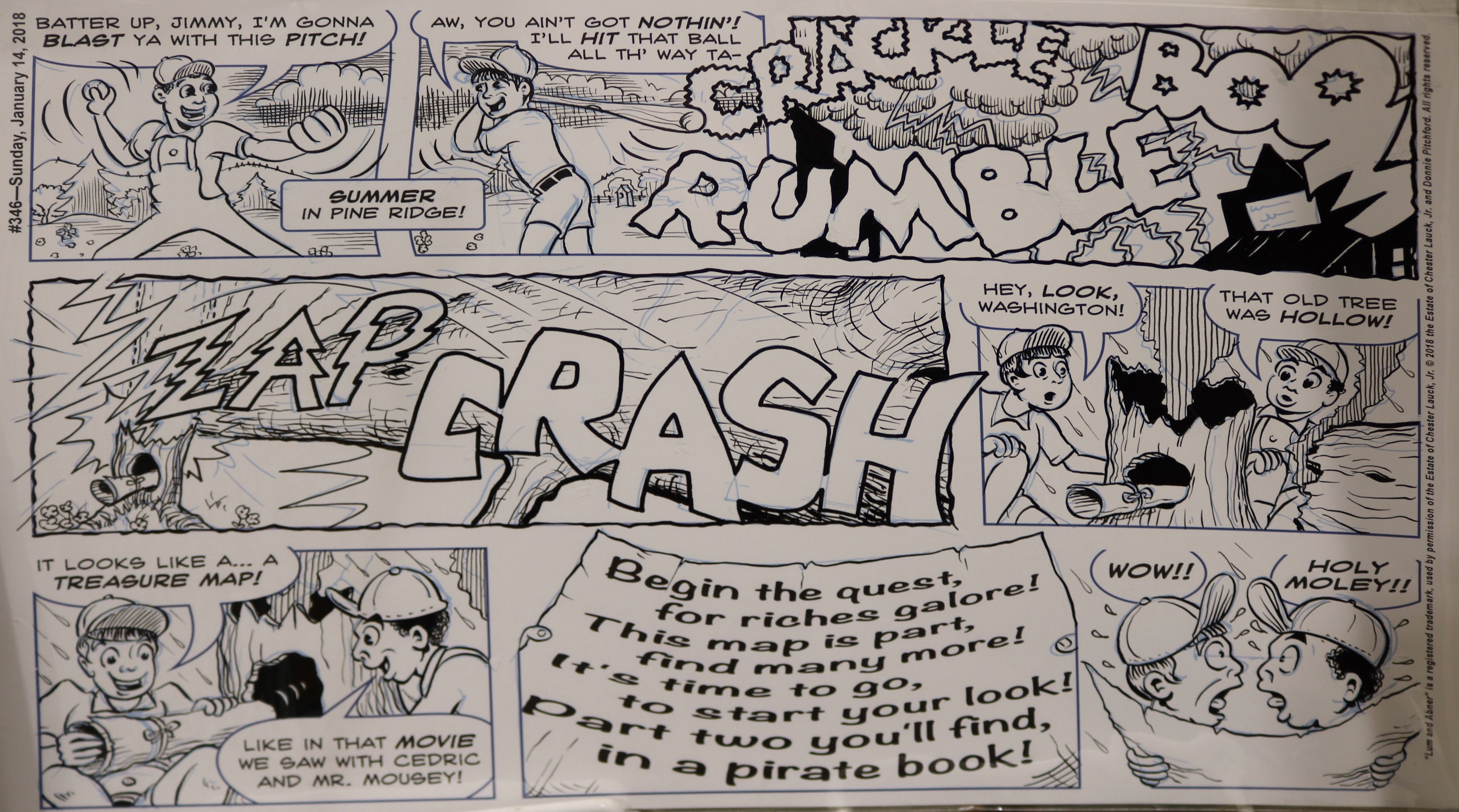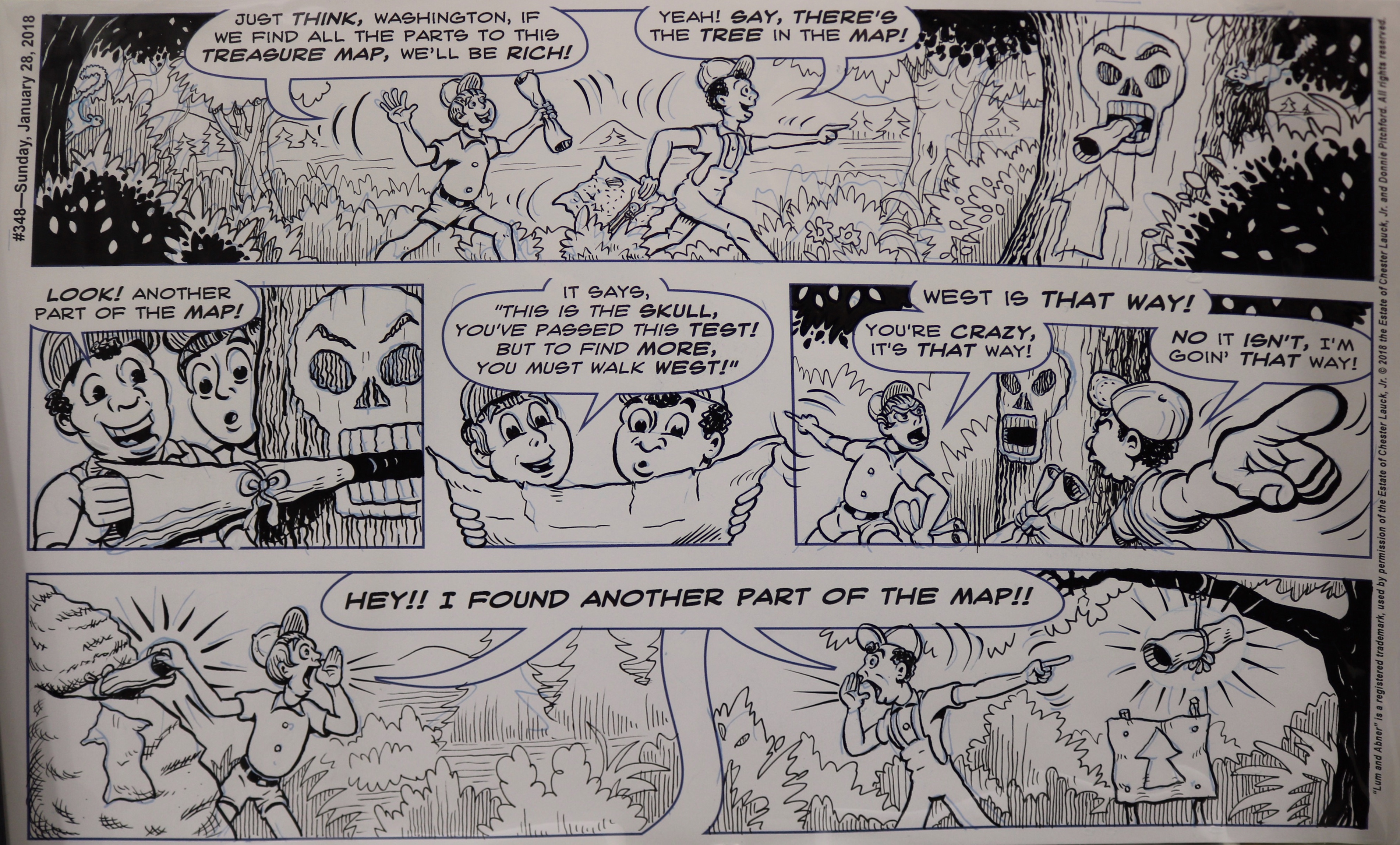 According to Mr. Pitchford, he decided to become a cartoonist at age five. Following his broadcast teaching career, he hit the ground running in 2011 with the Lum and Abner comic strip, based on the classic radio/movie series. With this endeavor he’s been able to work with old friends and mentors George Wildman, Nick Cuti, Hy Eisman, John Rose, and others. Lum and Abner appears each week and includes an audio adaptation for blind friends.