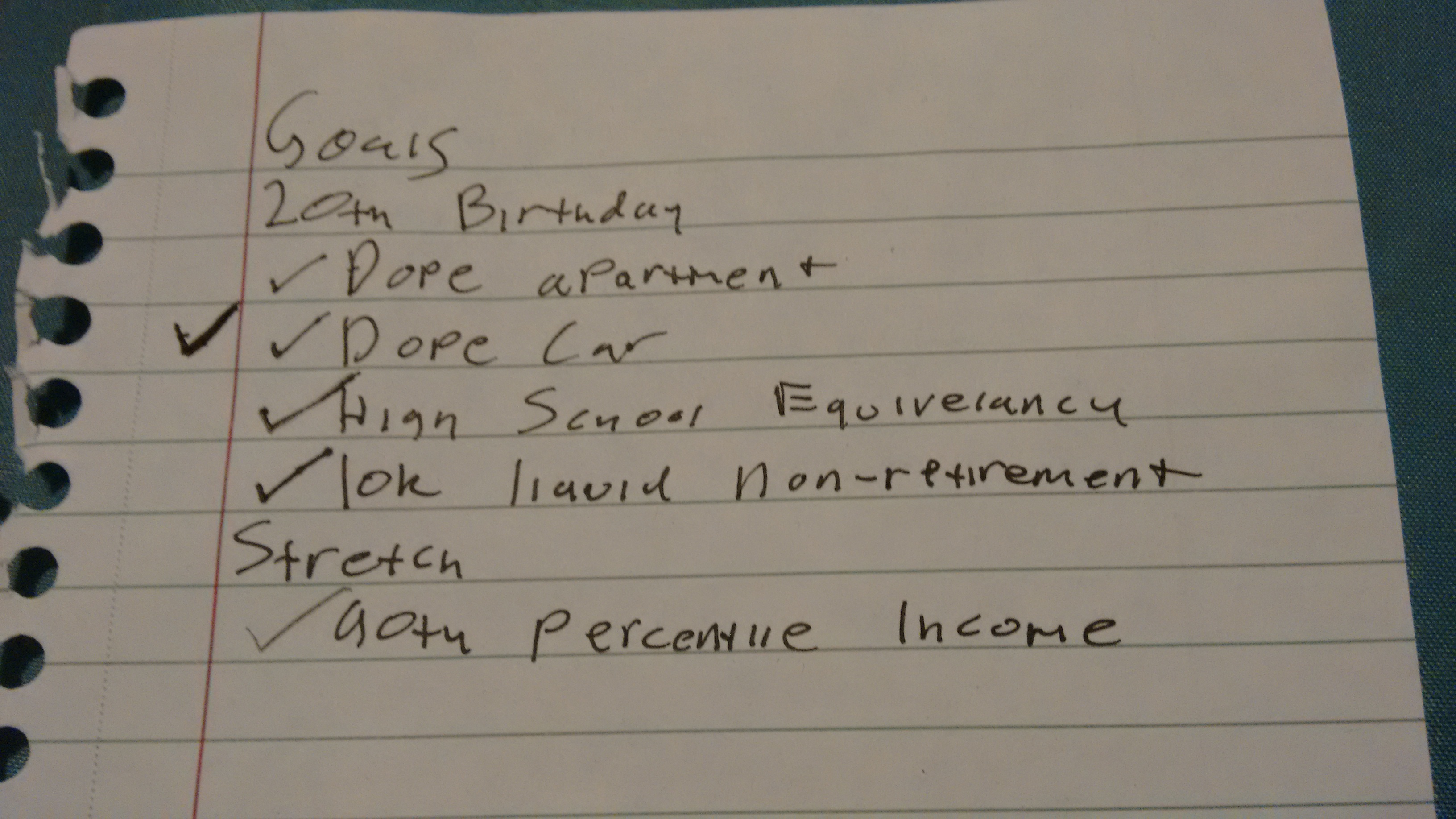 The things Ian wanted to accomplish by his 20th birthday. As you can see, he did them all, even his "stretch goal."