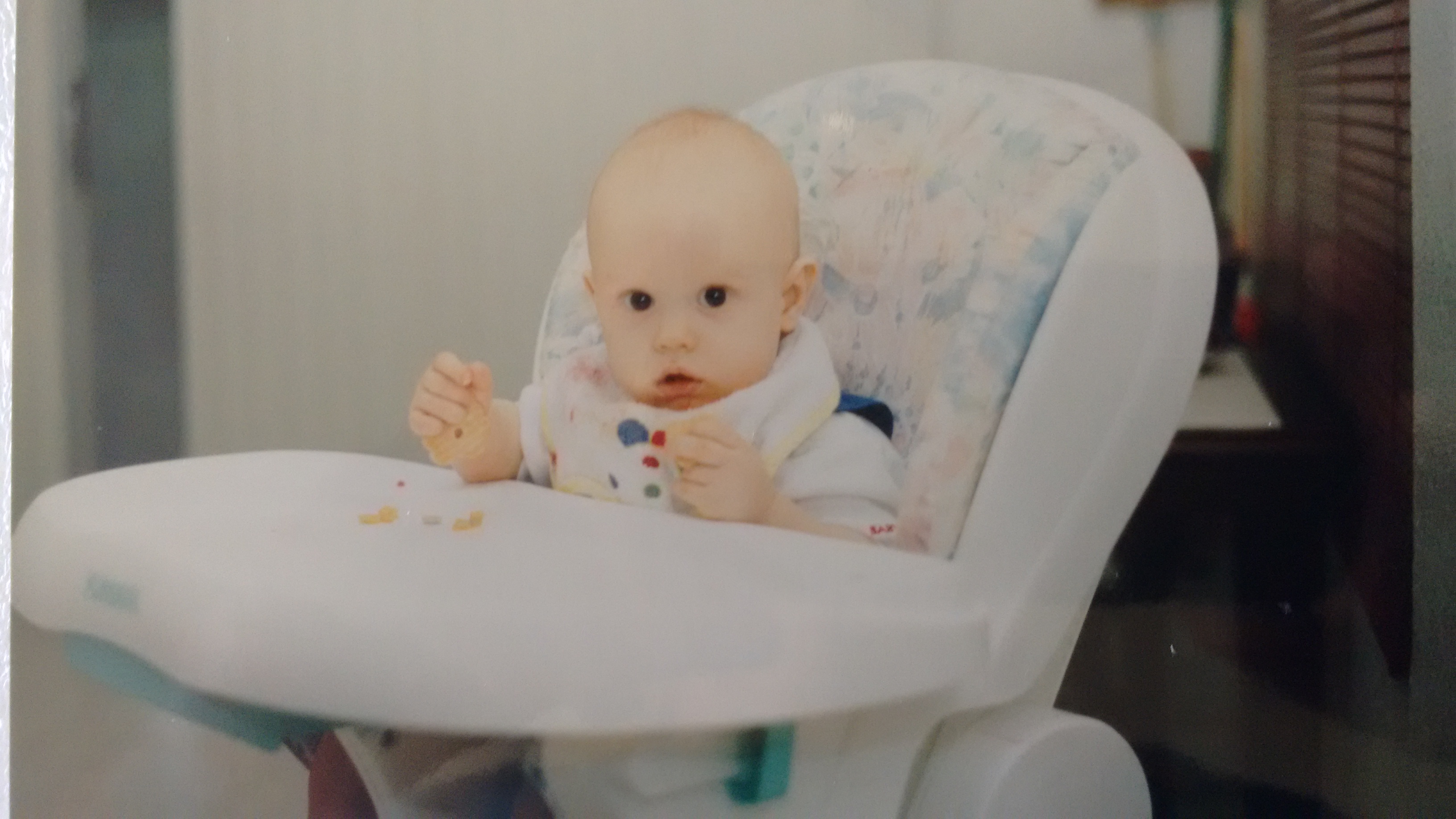Baby Ian (my mother made me add this). He was born one day shy of being declared a "preemie," skinny, blue, and screaming. He fattened up nicely within a few months and was a cheerful, happy baby who attracted attention everywhere he went. However, within a few years he reverted back to his skinny, screaming state. (Kidding, kidding.)