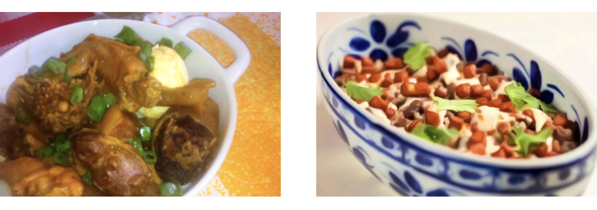 Alguns dos pratos mais típicos do estado, como o rubacão (à direita) e a galinha de capoeira, não são apimentados.