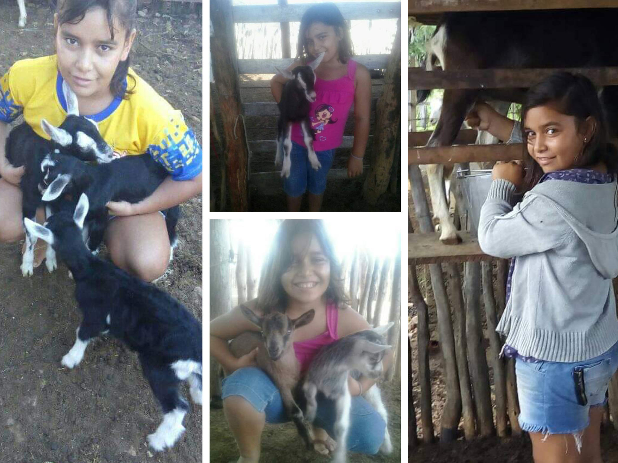 Apaixonada pelos animais, a menina gosta de participar das atividades e agrega ainda mais carinho ao trabalho. São 70 cabras, mas só 5 contribuem hoje com a produção de leite.