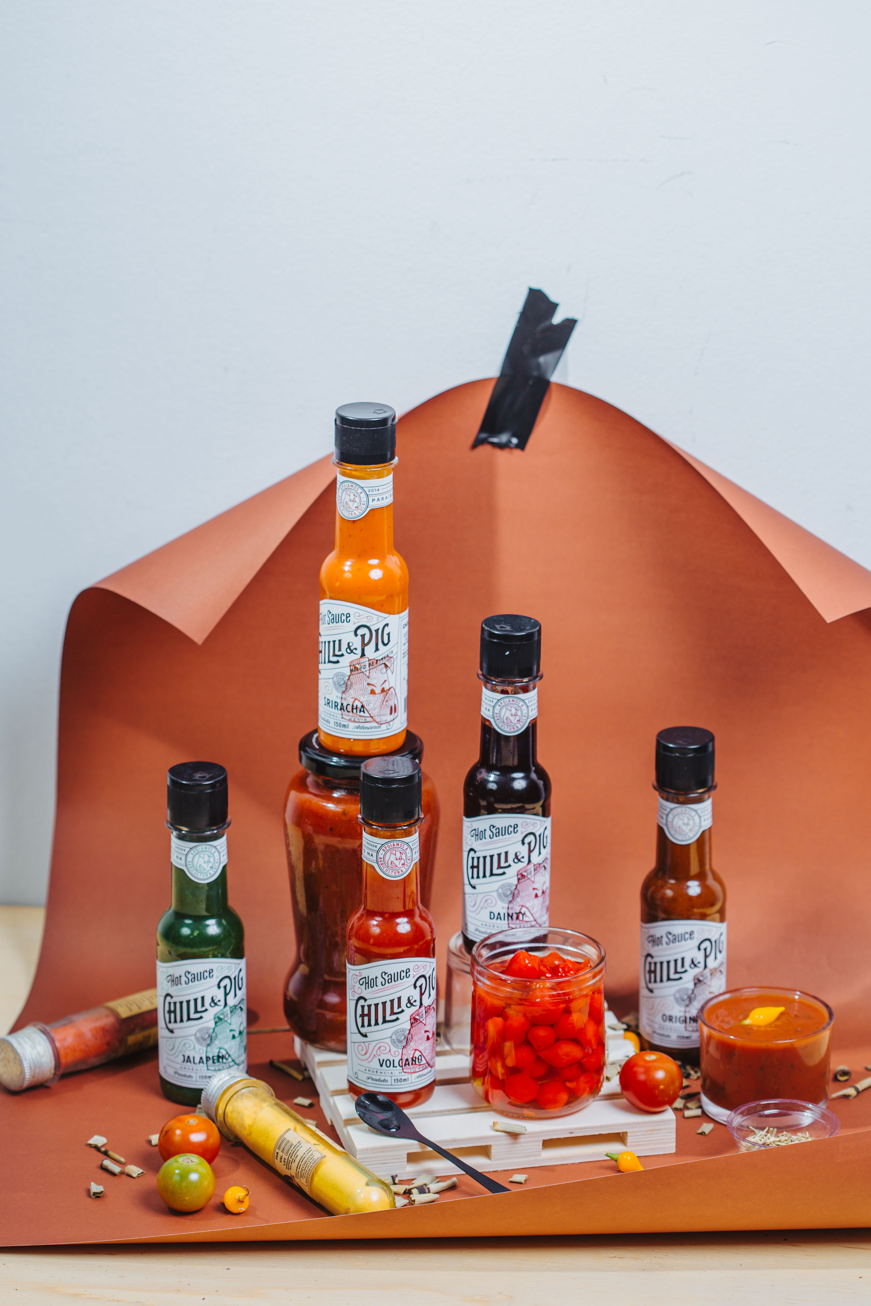 Eles criaram a marca de molhos de pimenta Chilli & Pig.