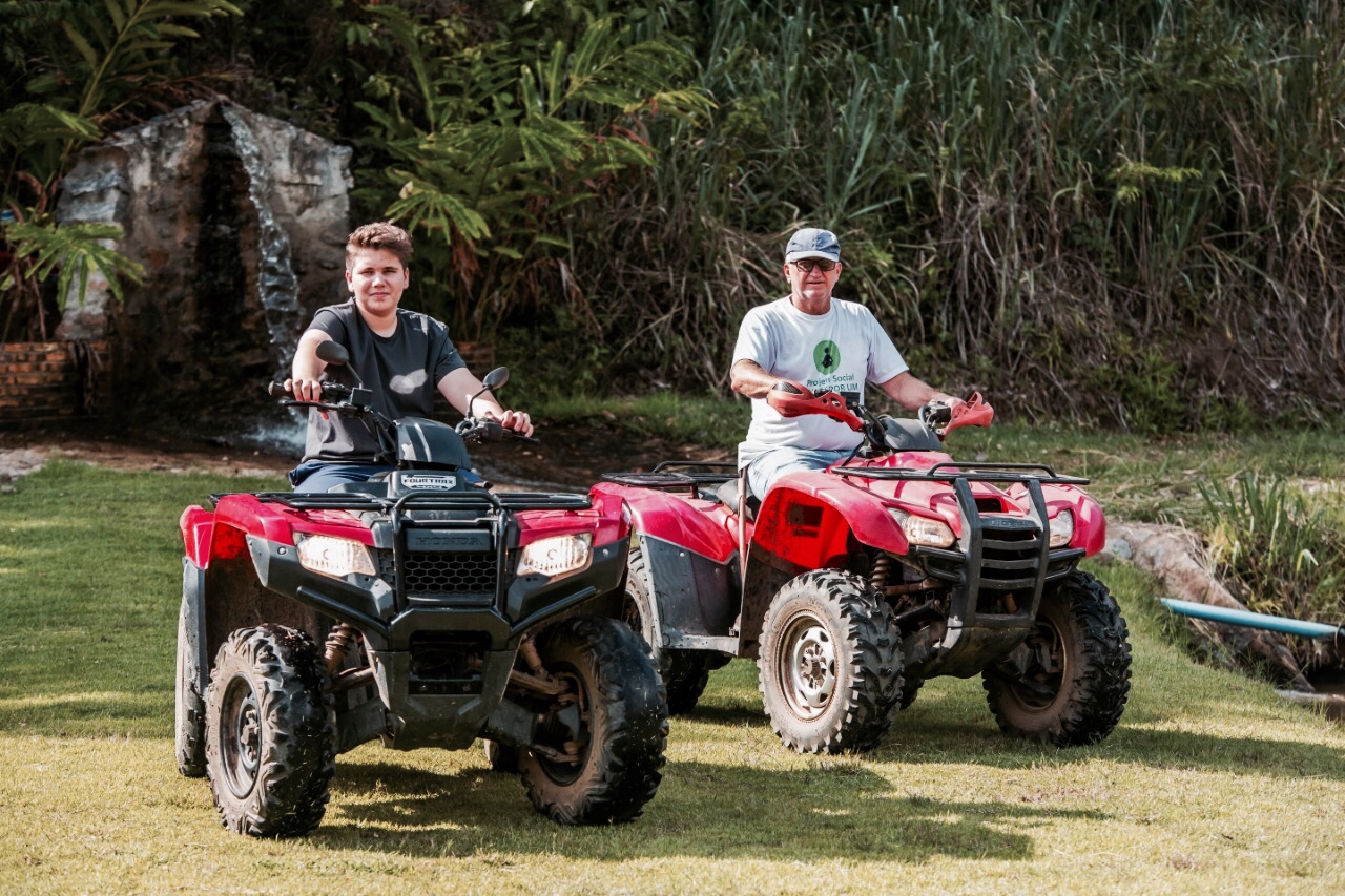 Trilhas, cachoeiras, passeio a cavalo ou em quadriciclo, e visita ao ateliê da ceramista Malu Miranda, esposa de Jurandir, são opções para quem passa pelo local.