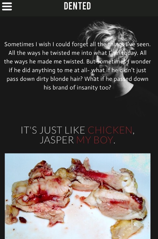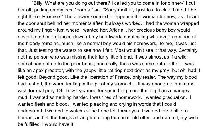 One of the most chilling quotes from the book, delivered by Jasper "Jazz" Dent, son and prodigy of notorious serial killer, Billy Dent.