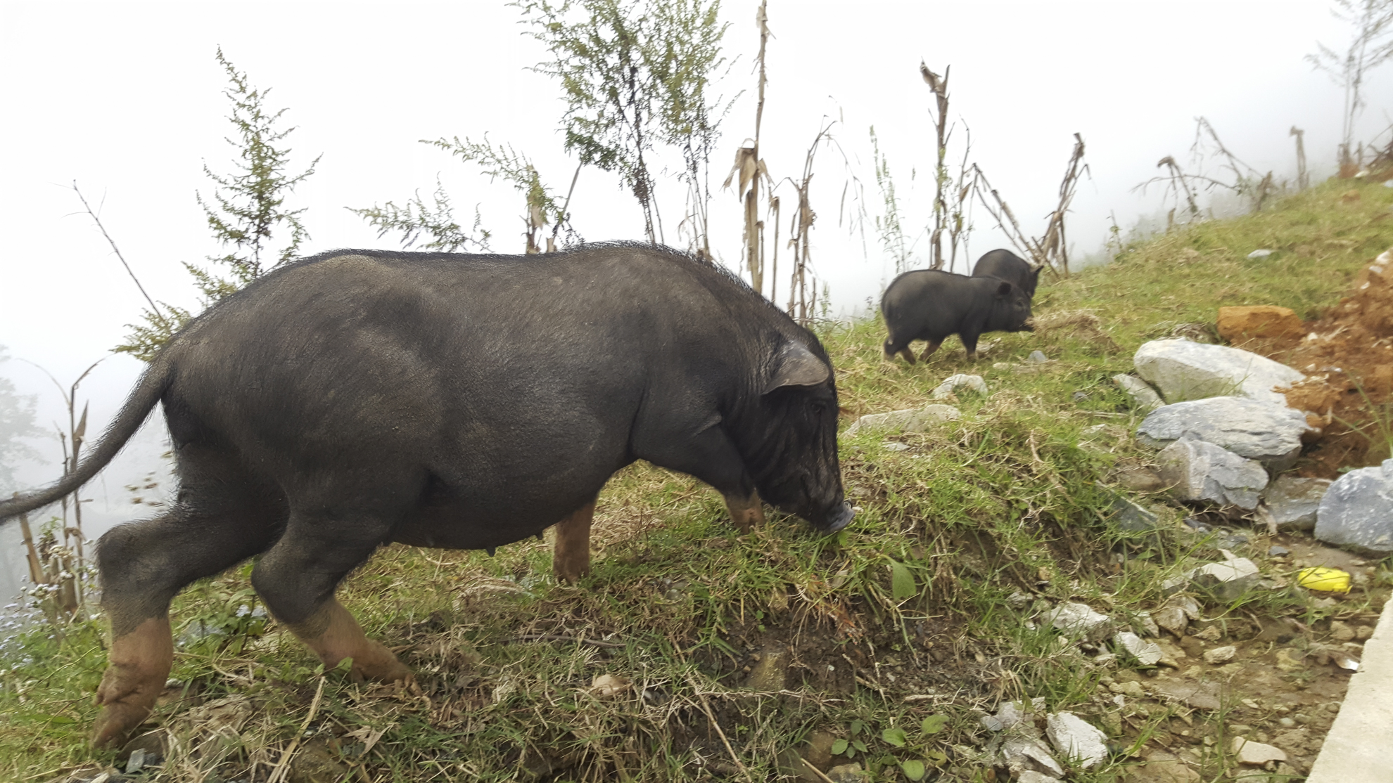 Outside, everything was serene - resting buffaloes, dogs giving satisfied smiles, and pigs constantly tossing the ground looking for food (or truffles!).