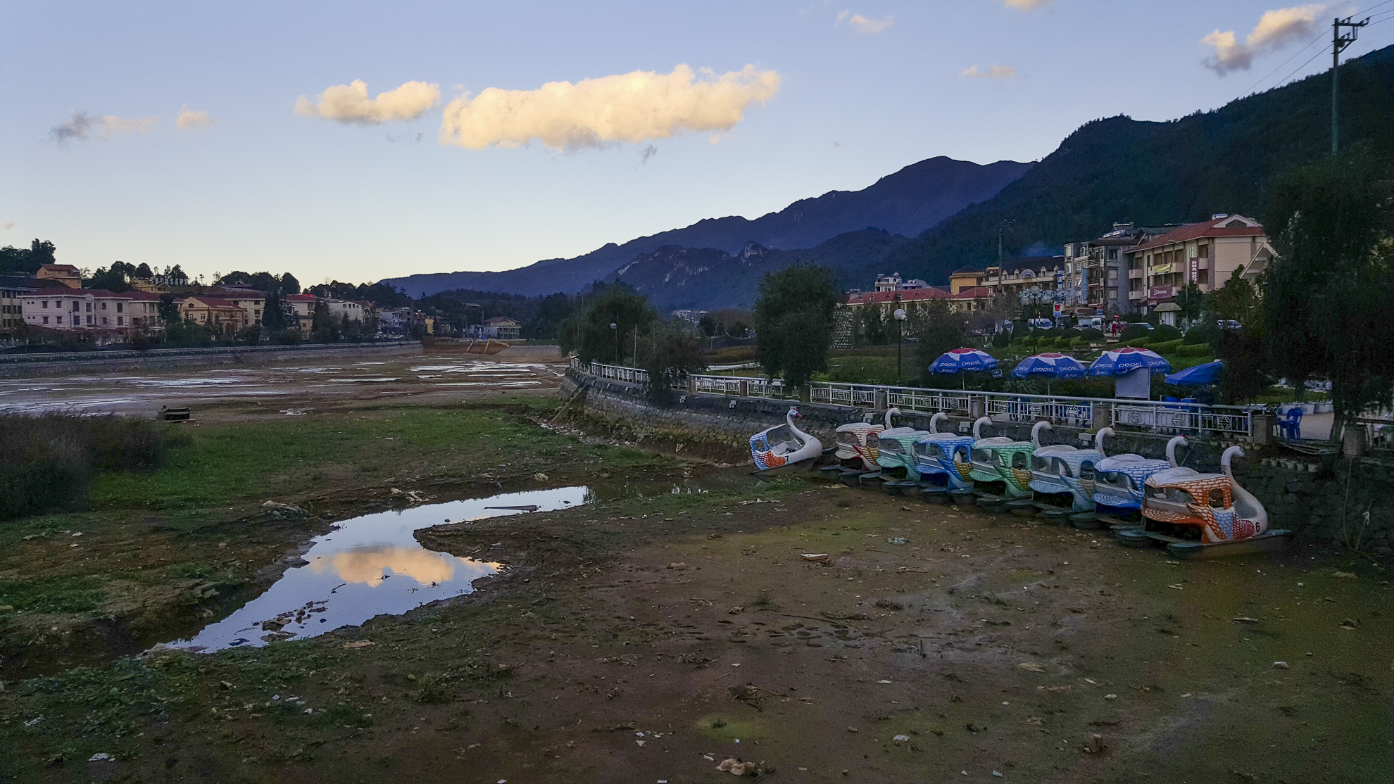 Back in Sapa town, at the square facing its administrative buildings, I chanced upon this damed up lake. Flanked on the left are huge, beautifully built French influenced government buildings with the huge sickle and hammer on top, while paddle swan cars sit on the right dried bank, painting a charming picture.