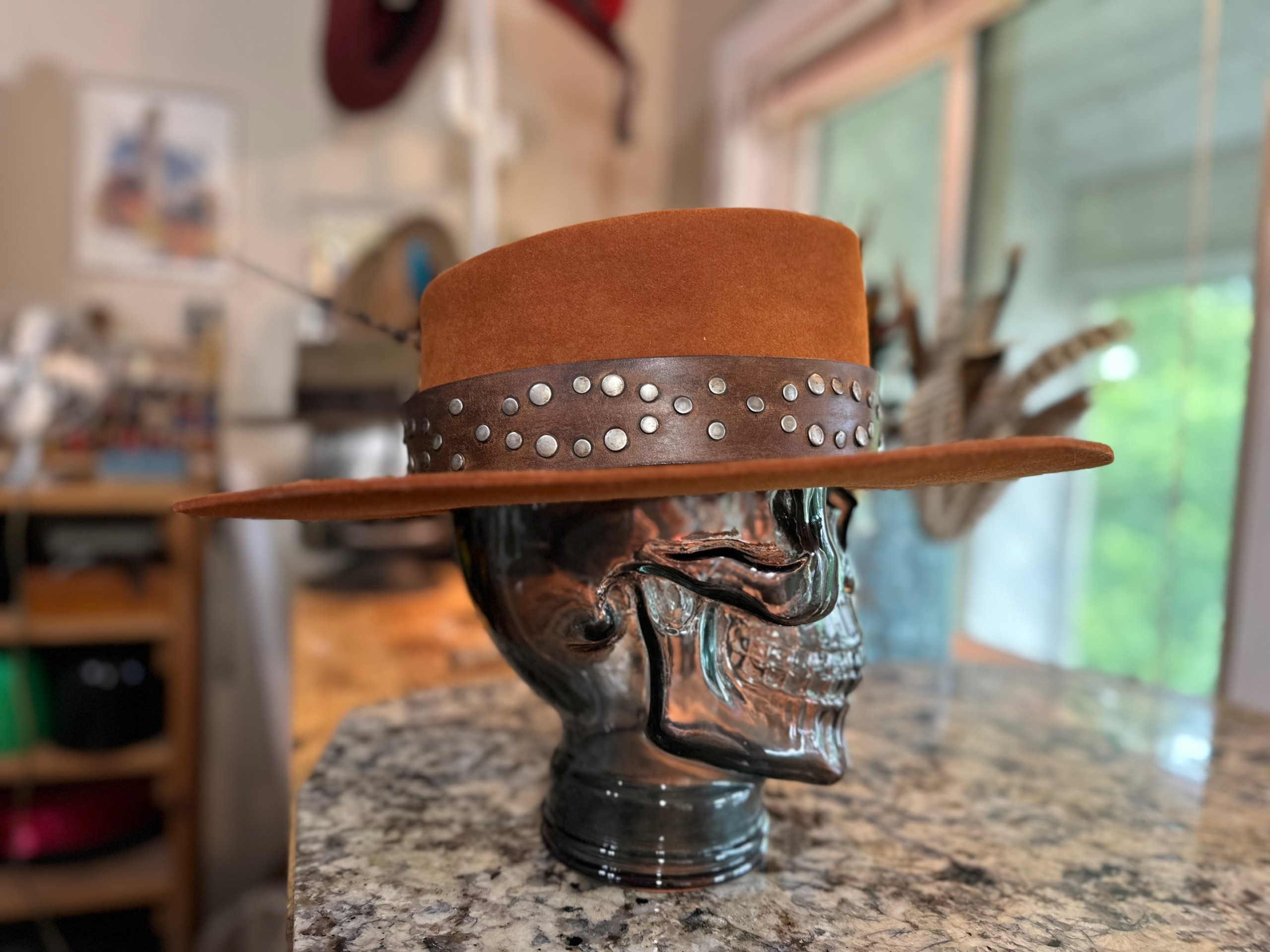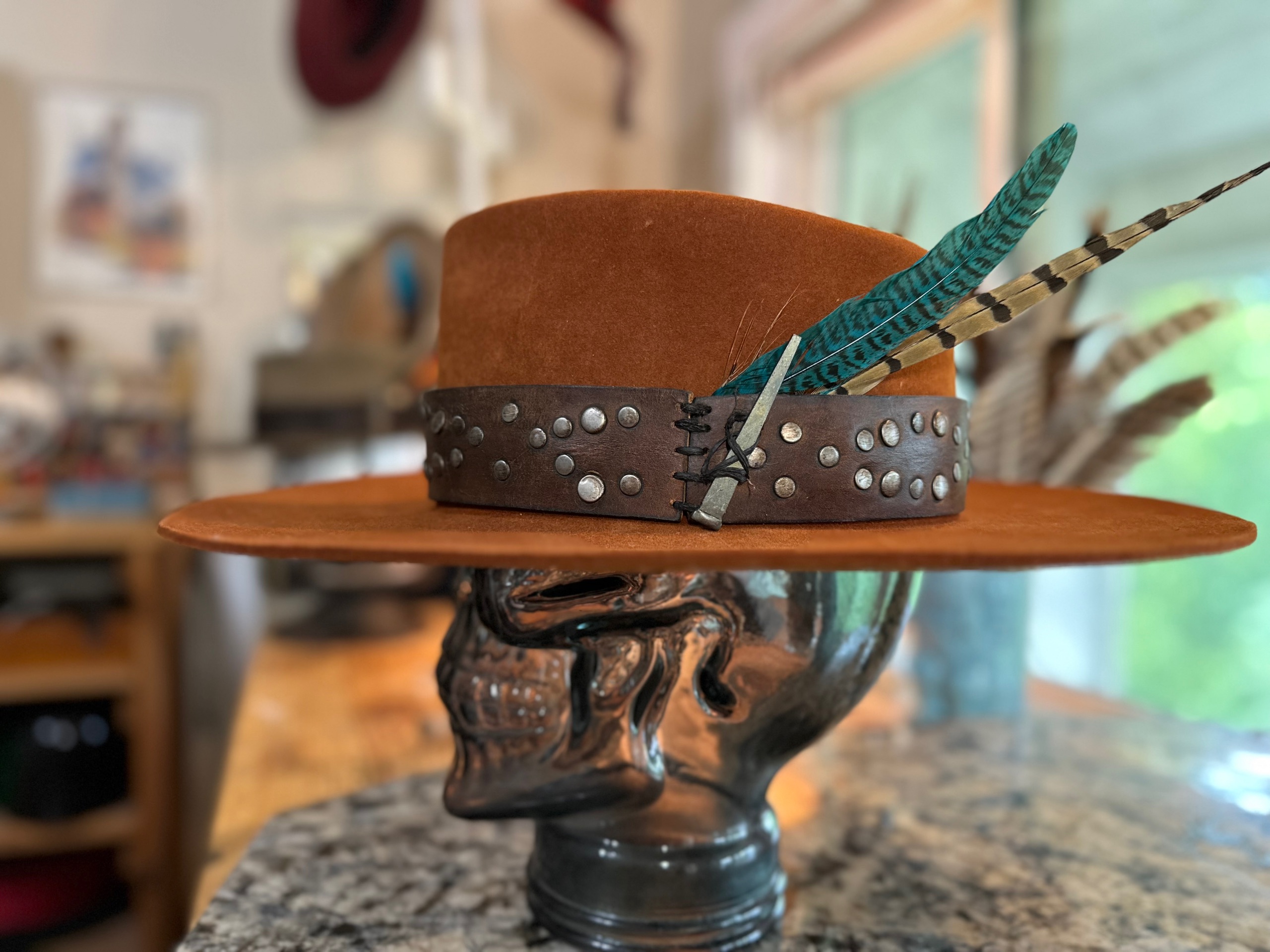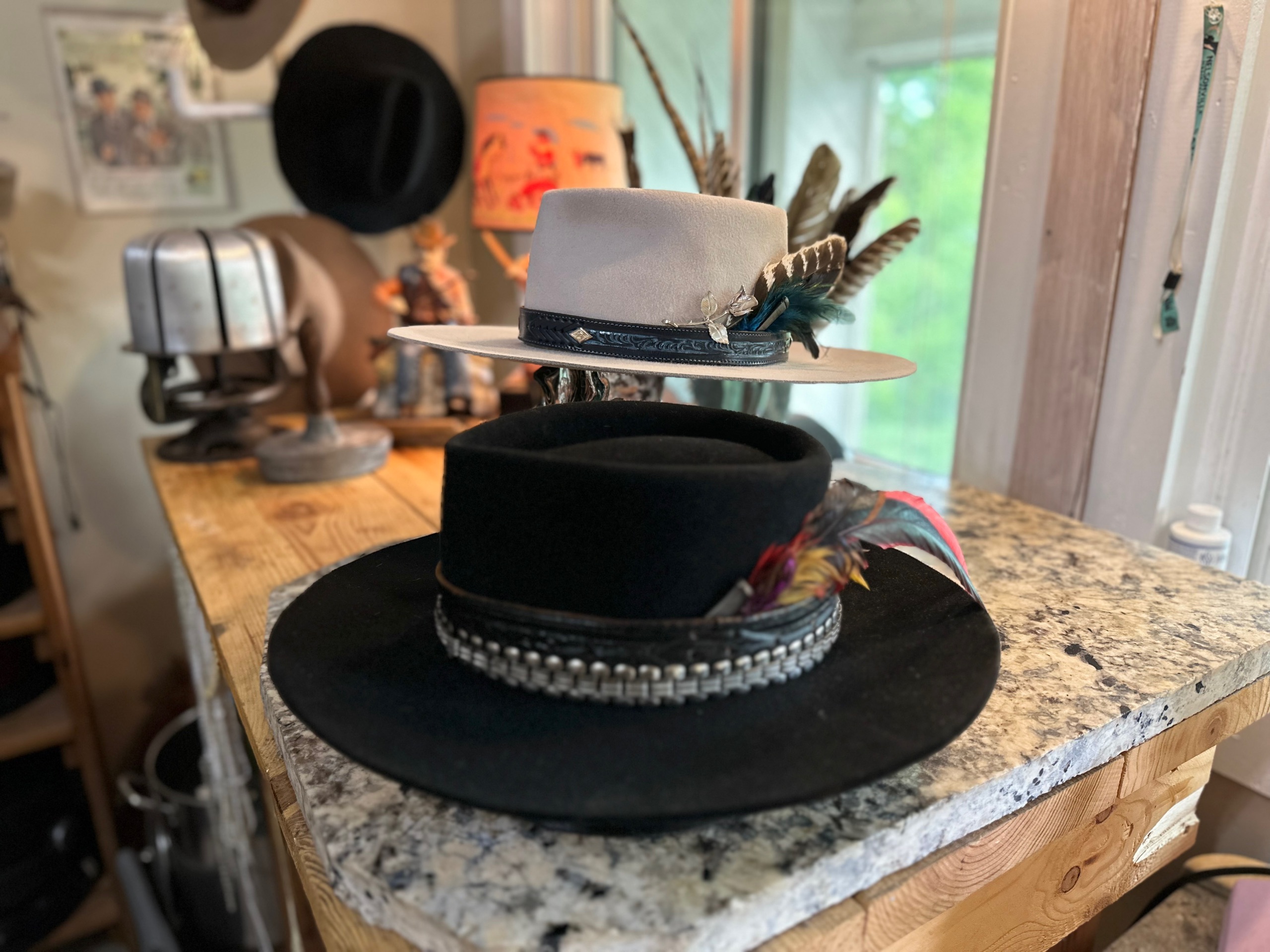 Travis works with each client to create hats perfectly tailored to each person's taste. Did you see something you like, but it's already sold? While no two hats are alike, Travis can craft something similar for you as a custom order.