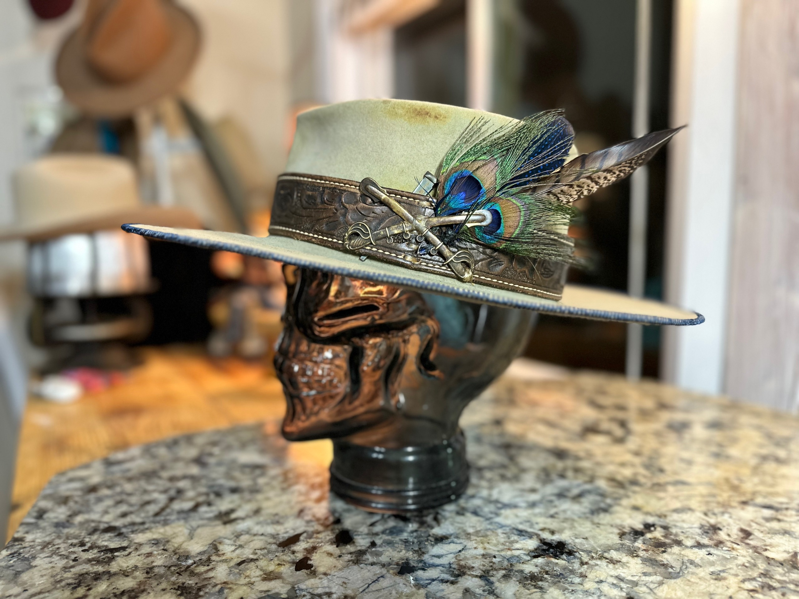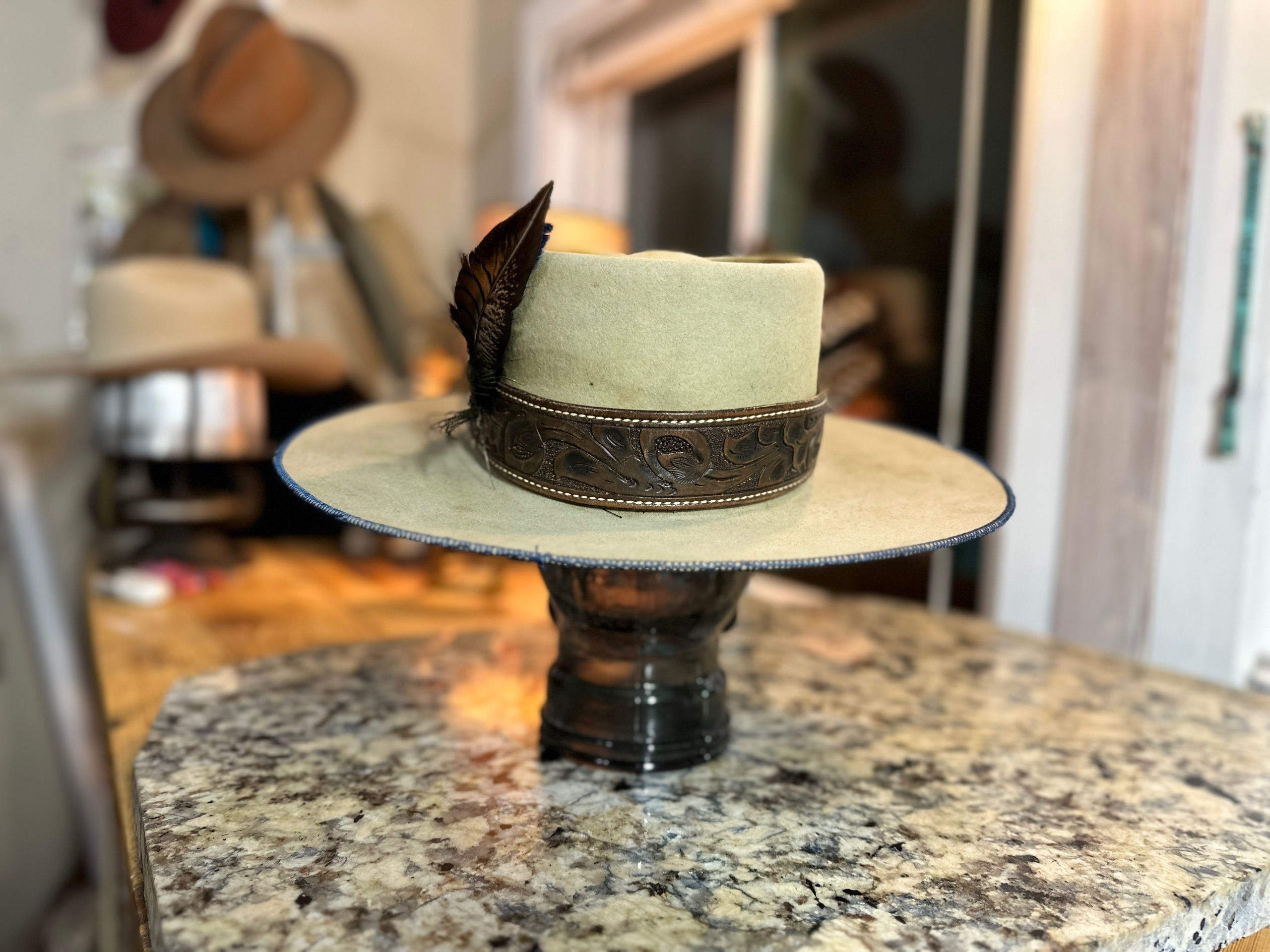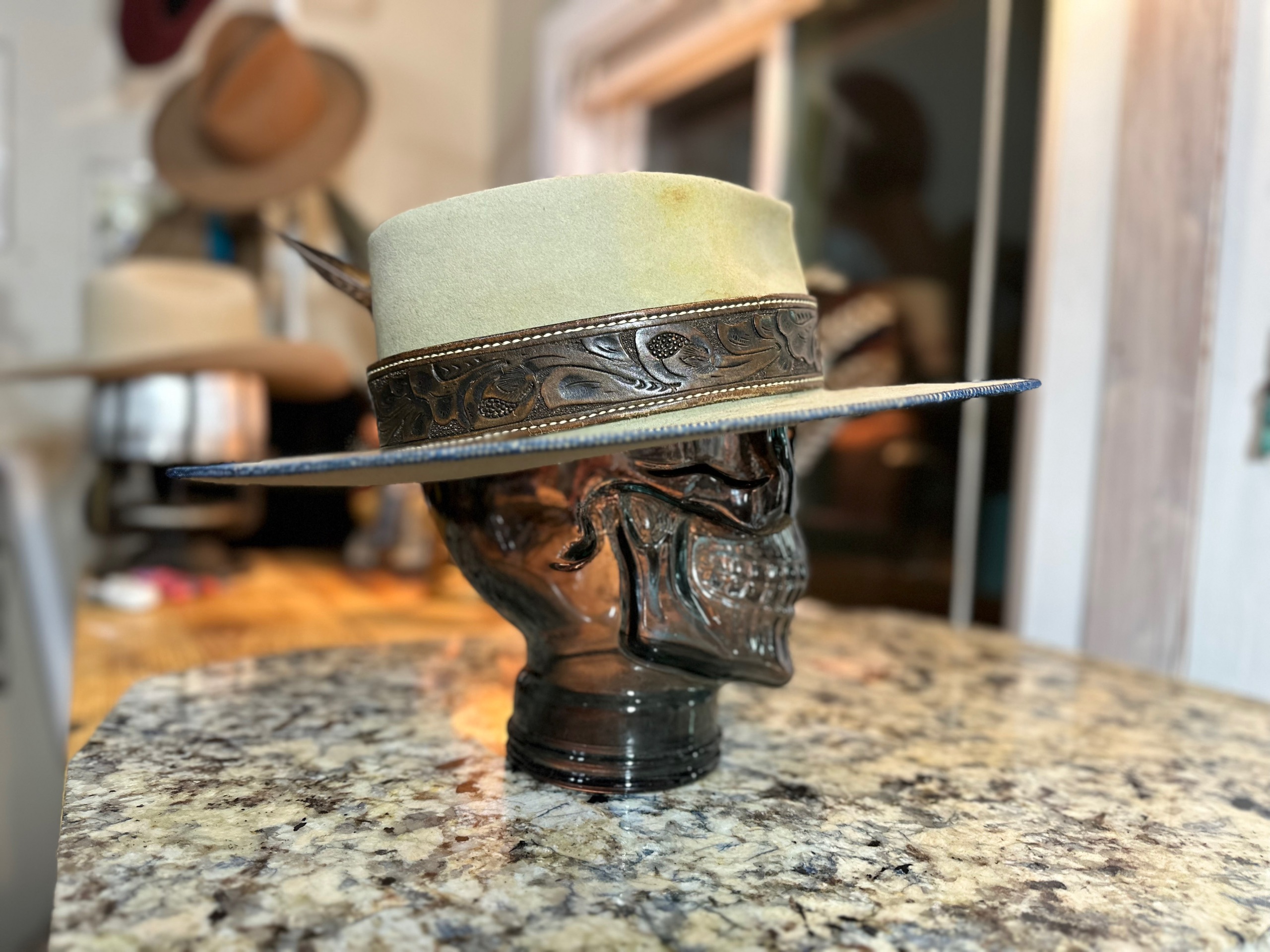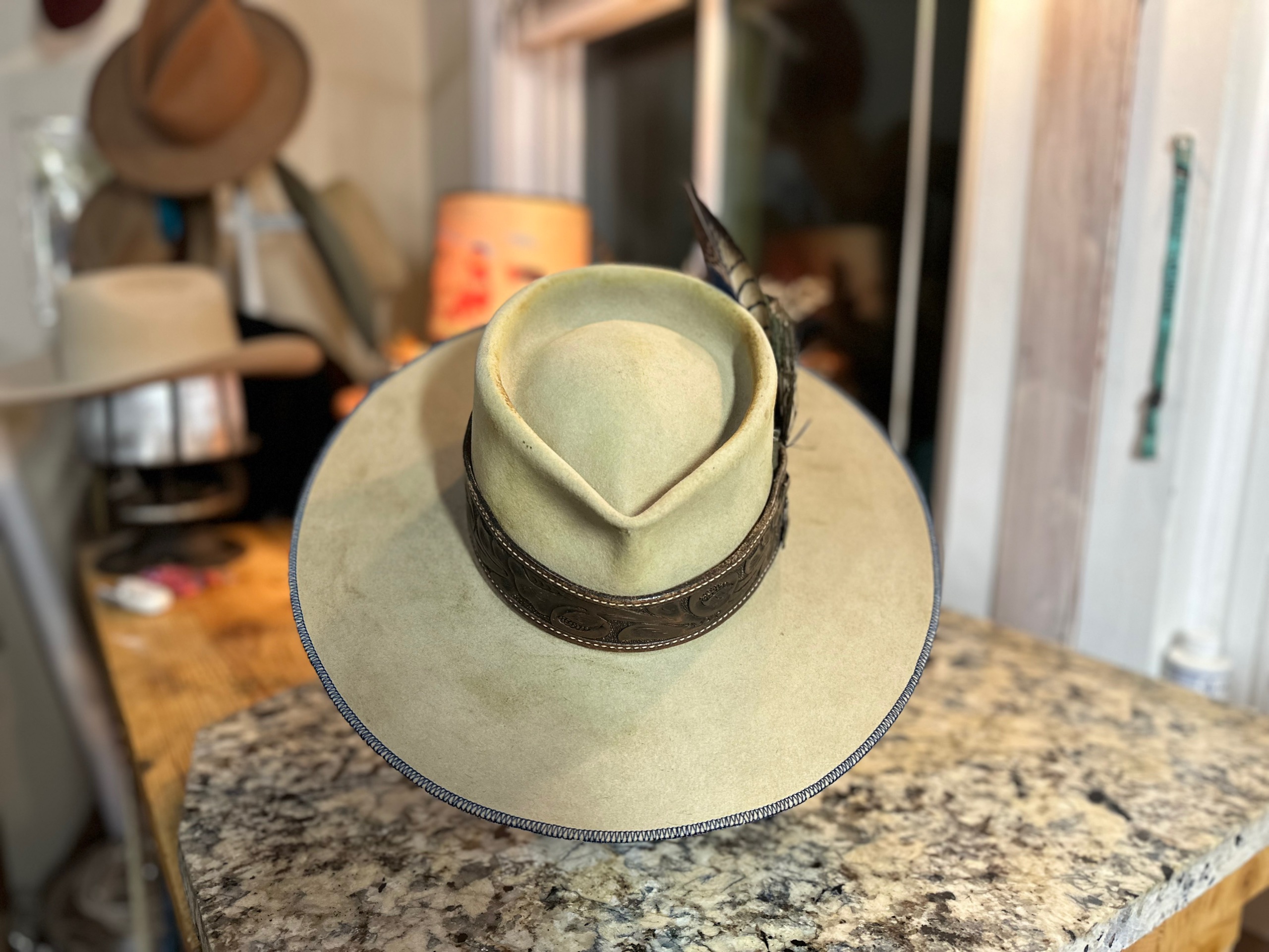 Do you have a hat you can't part with, but the style just isn't working for you? Or maybe you own an old, dirty hat that you love but you can no longer be seen in. Travis can work with your old quality felts to bring new life and style you will be proud to wear! Give him a call or email to discuss these services.