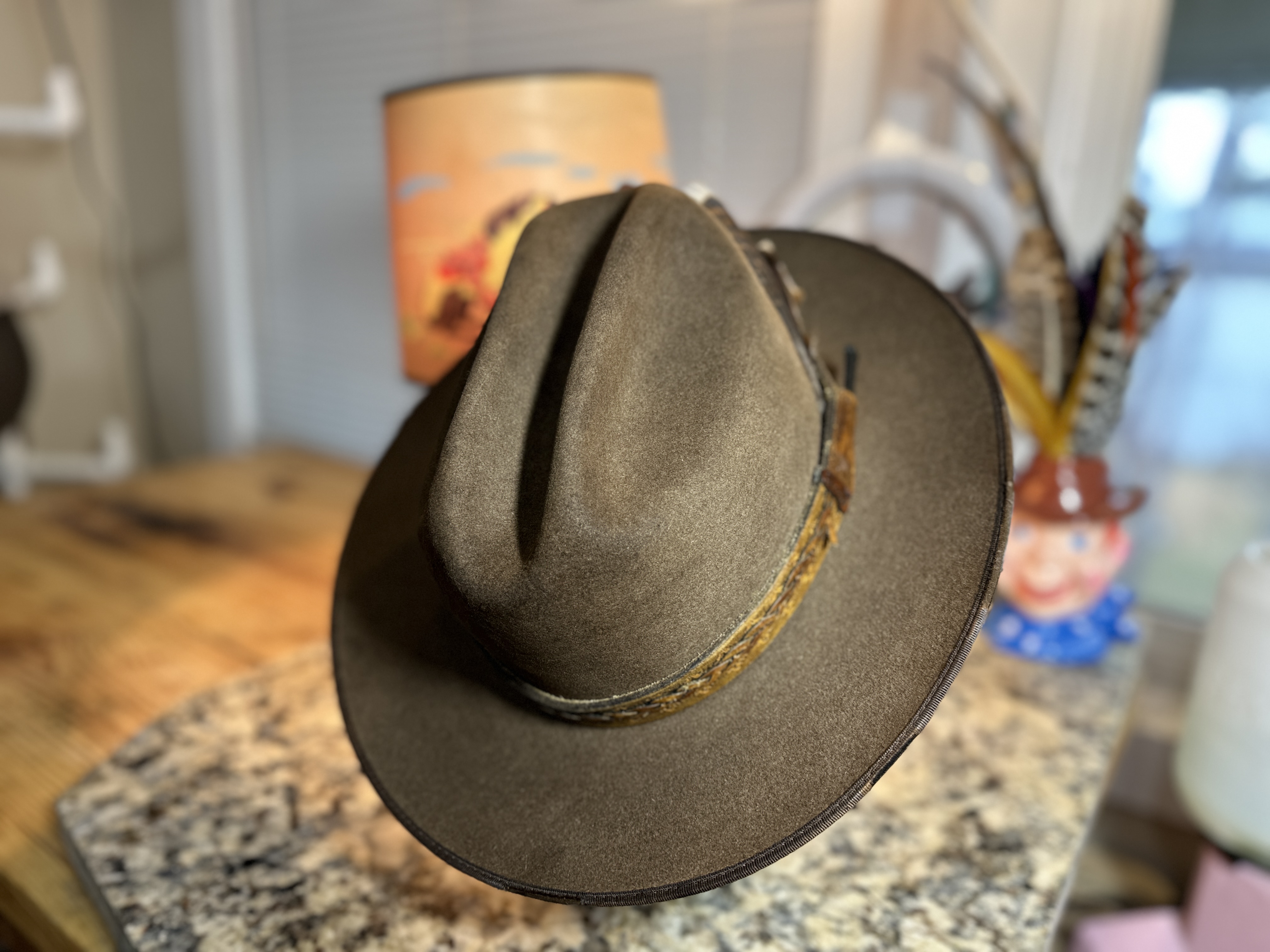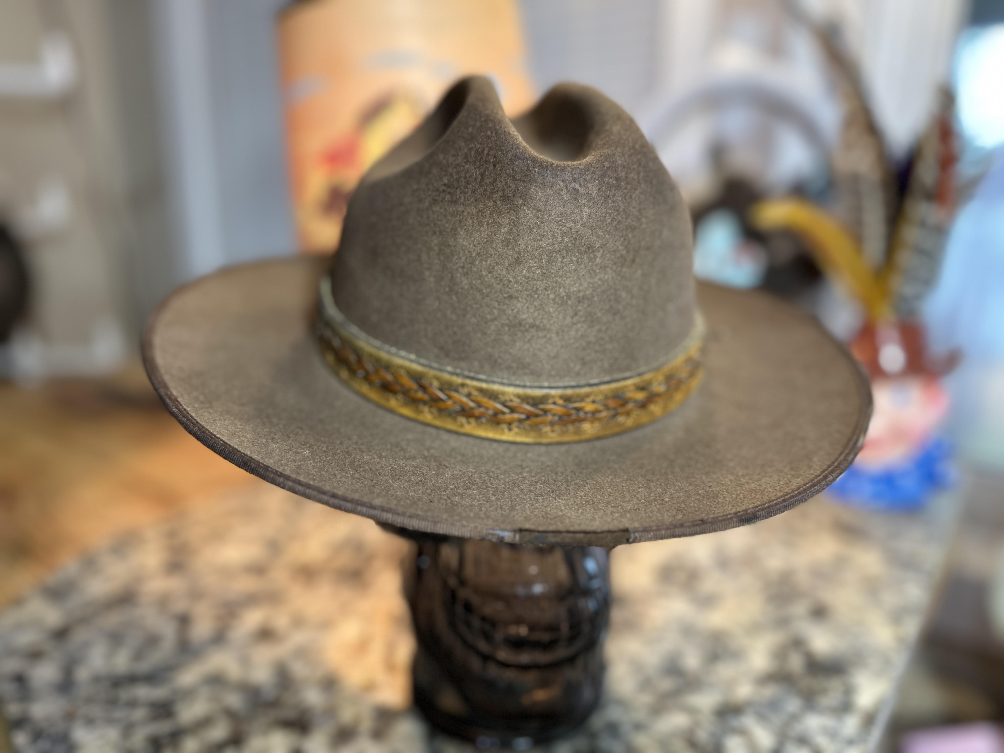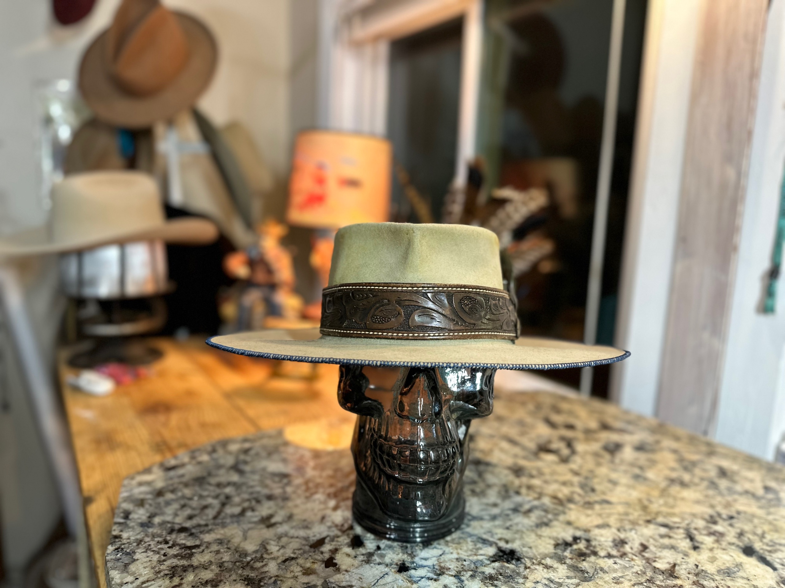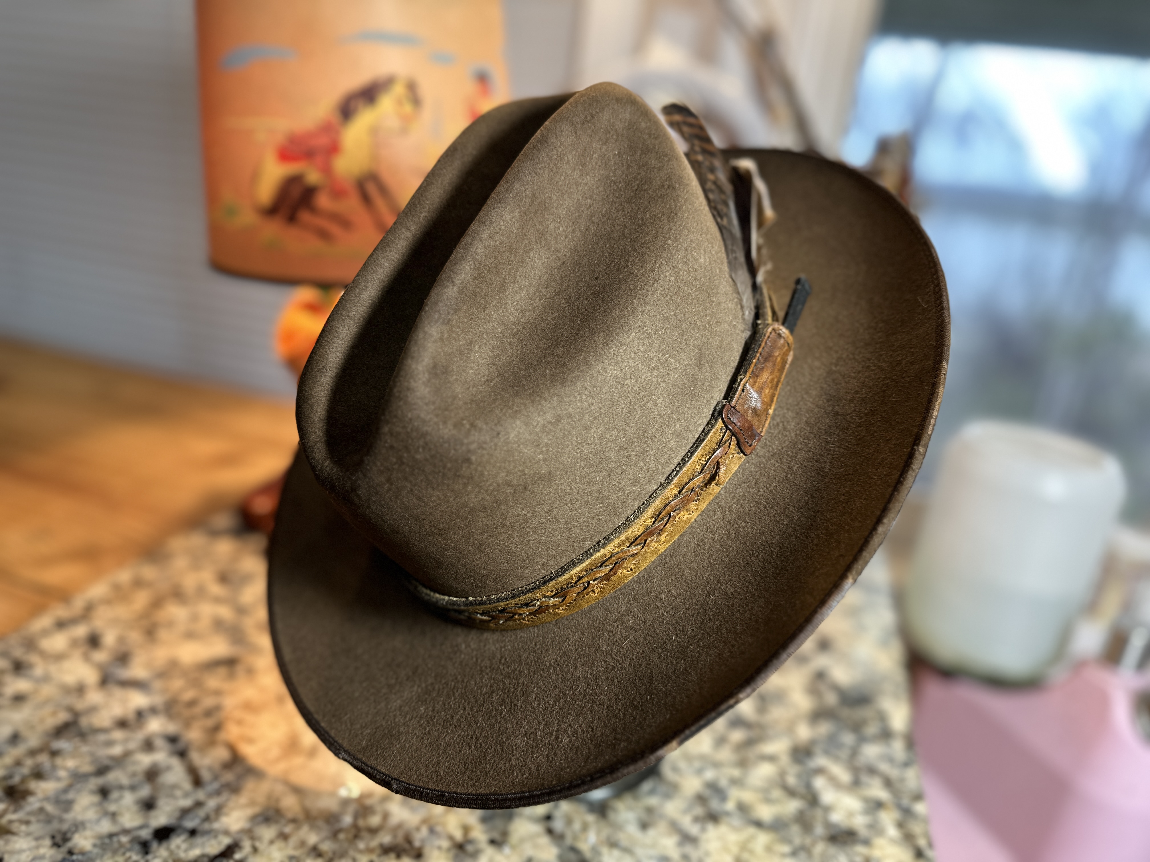 Do you have a hat you can't part with, but the style just isn't working for you? Or maybe you own an old, dirty hat that you love but you can no longer be seen in. Travis can work with your old quality felts to bring new life and style you will be proud to wear! Give him a call or email to discuss these services.