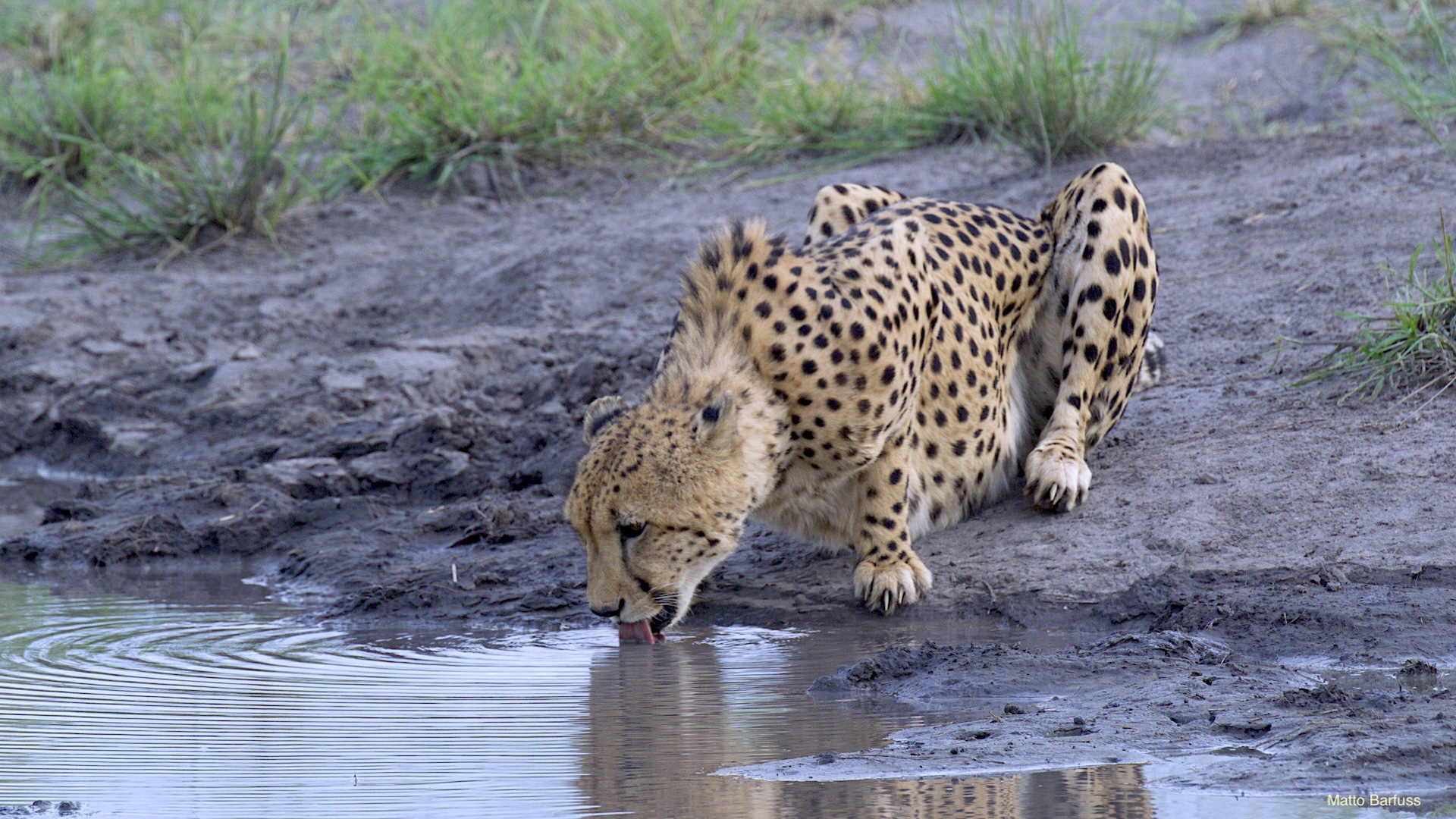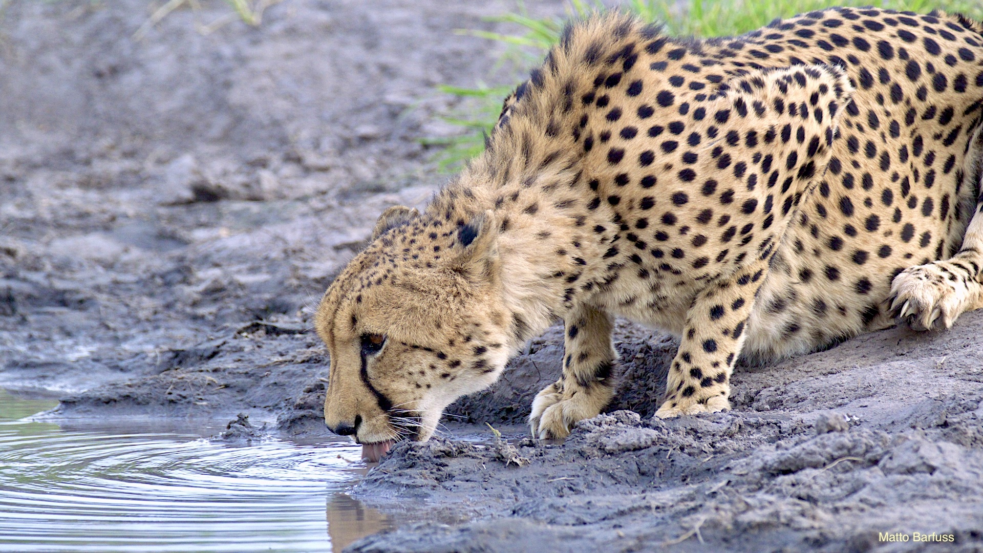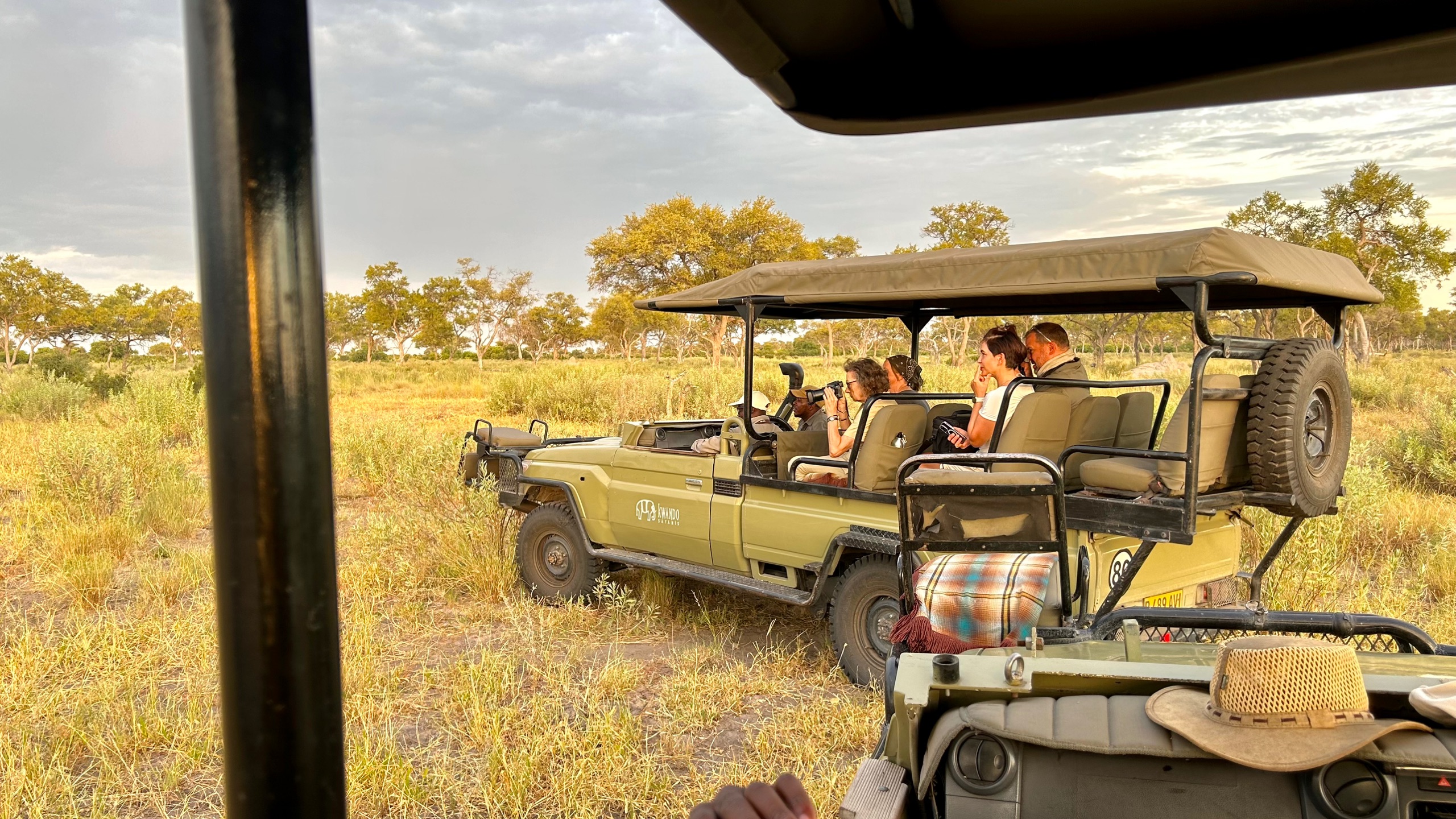 Trotz internationalen Flug geht es am ersten Abend gleich auf die erste Pirschfahrt. Ziel ist das gepumpte Wasserloch. Trotz Regenzeit ist aber nicht viel Wasser da. Eher Schlamm und das gibt schon den Hinweis: Die Kalahari steht auf der Schwelle einer großen Dürre. Wir alle sind froh, dass wir nun wenigstens noch den feuchteren Teil des Jahres erleben dürfen.