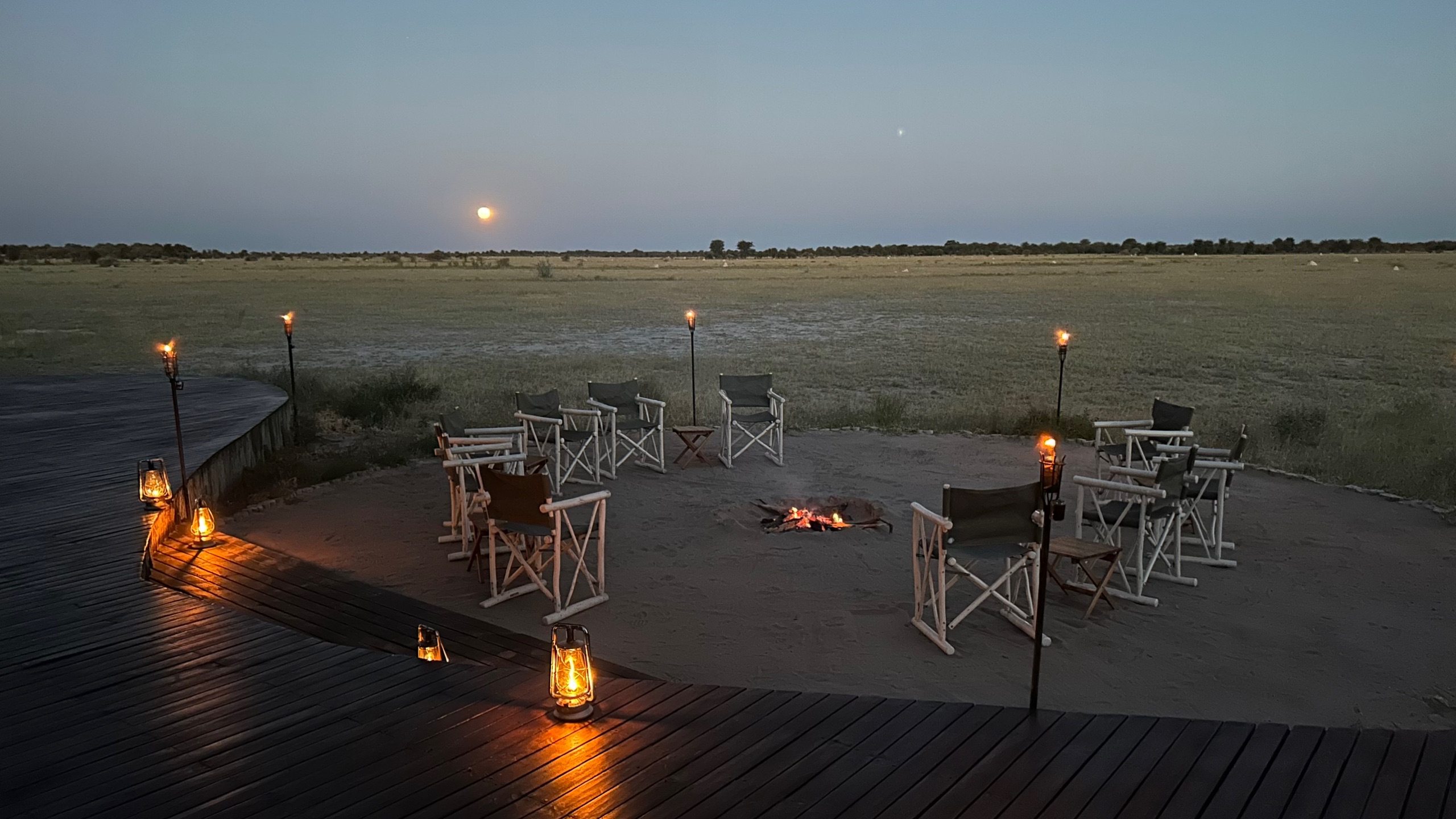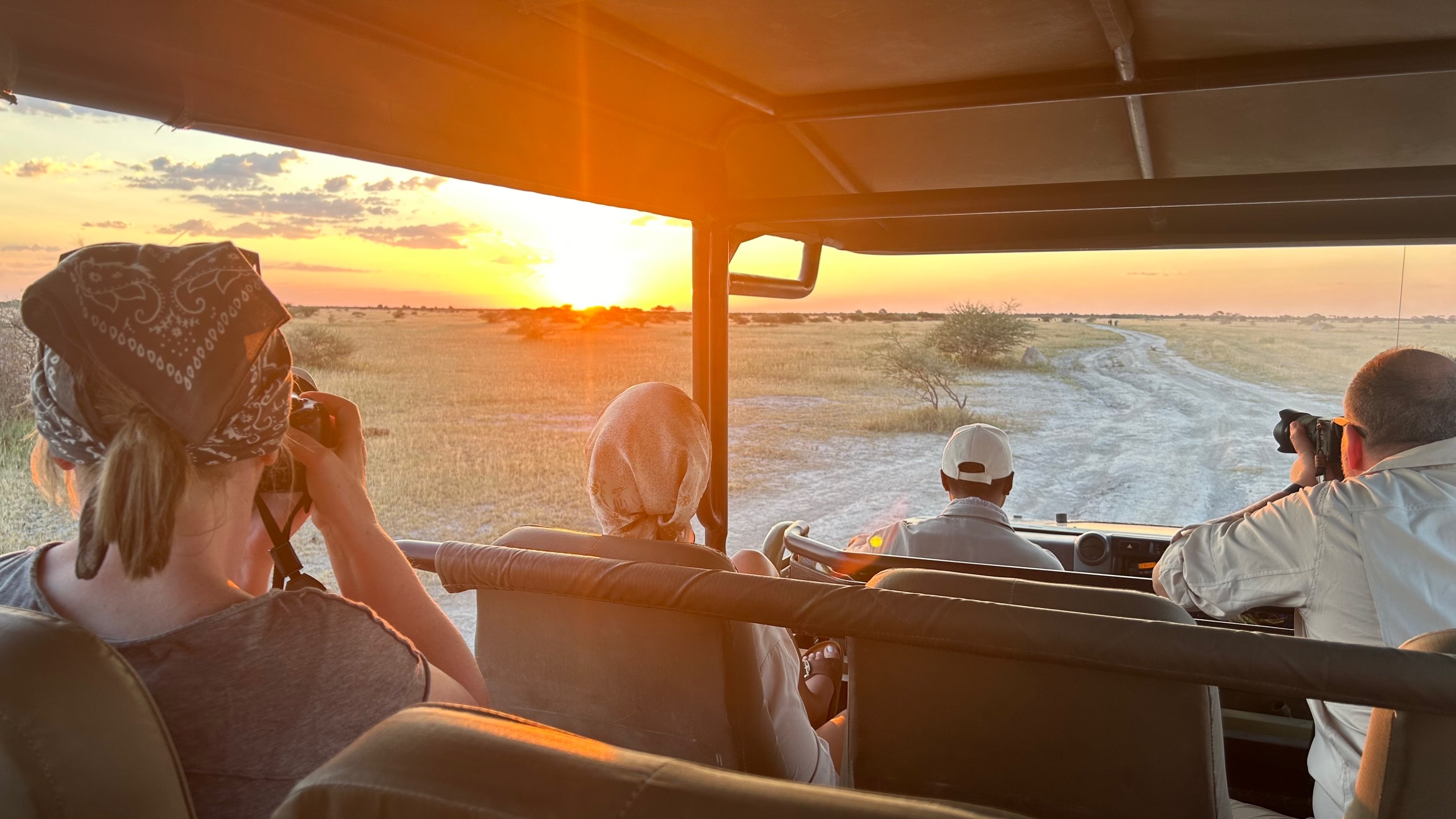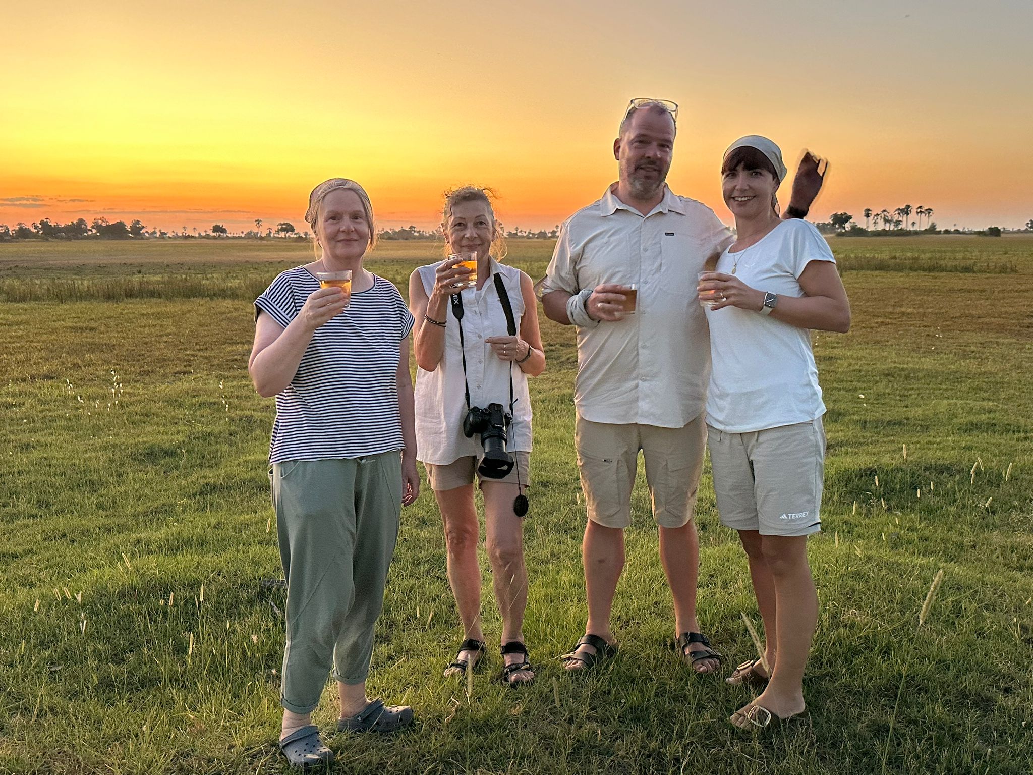 Nach zu intensivem Abend wartet der Sundowner im Camp…