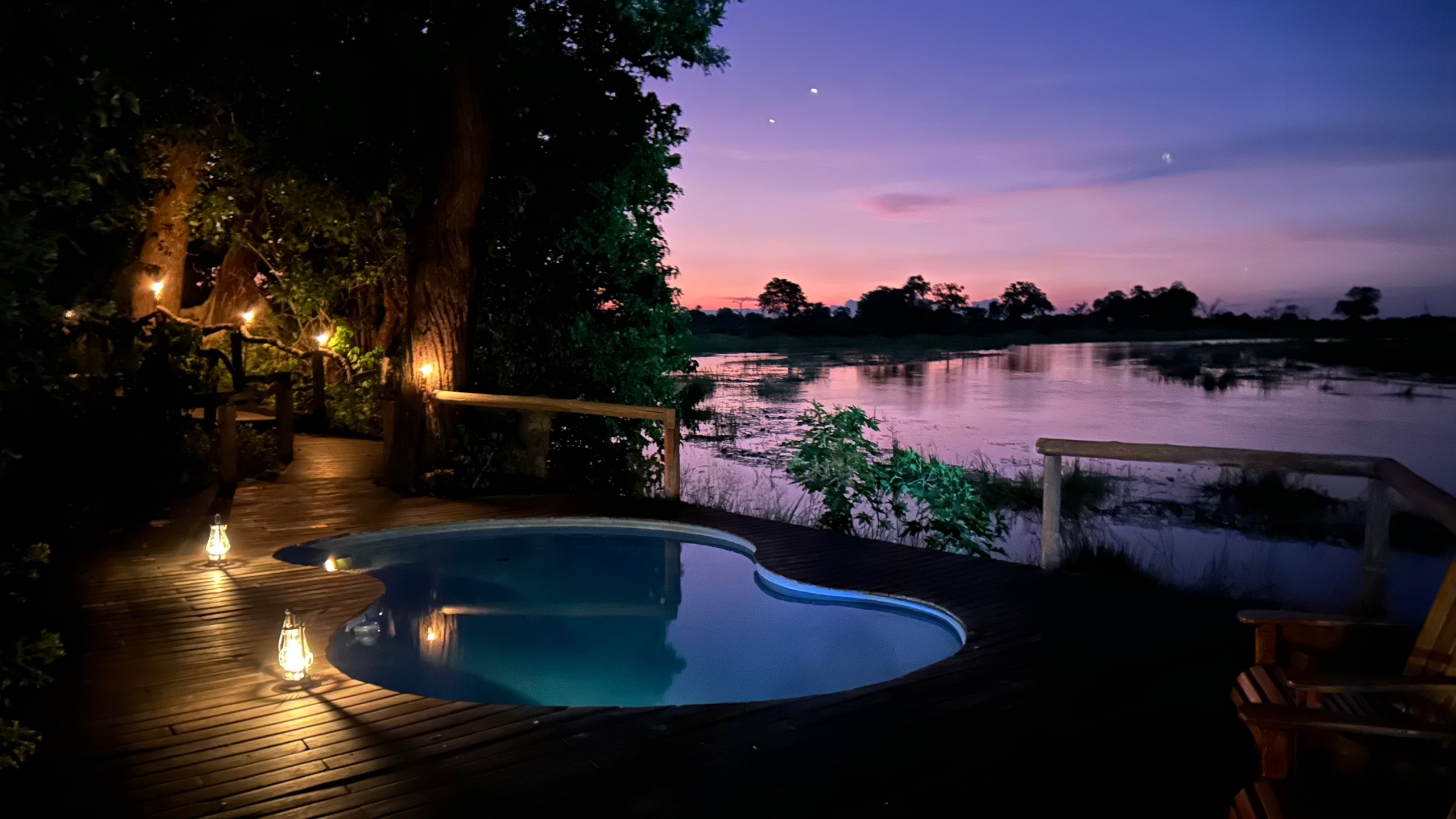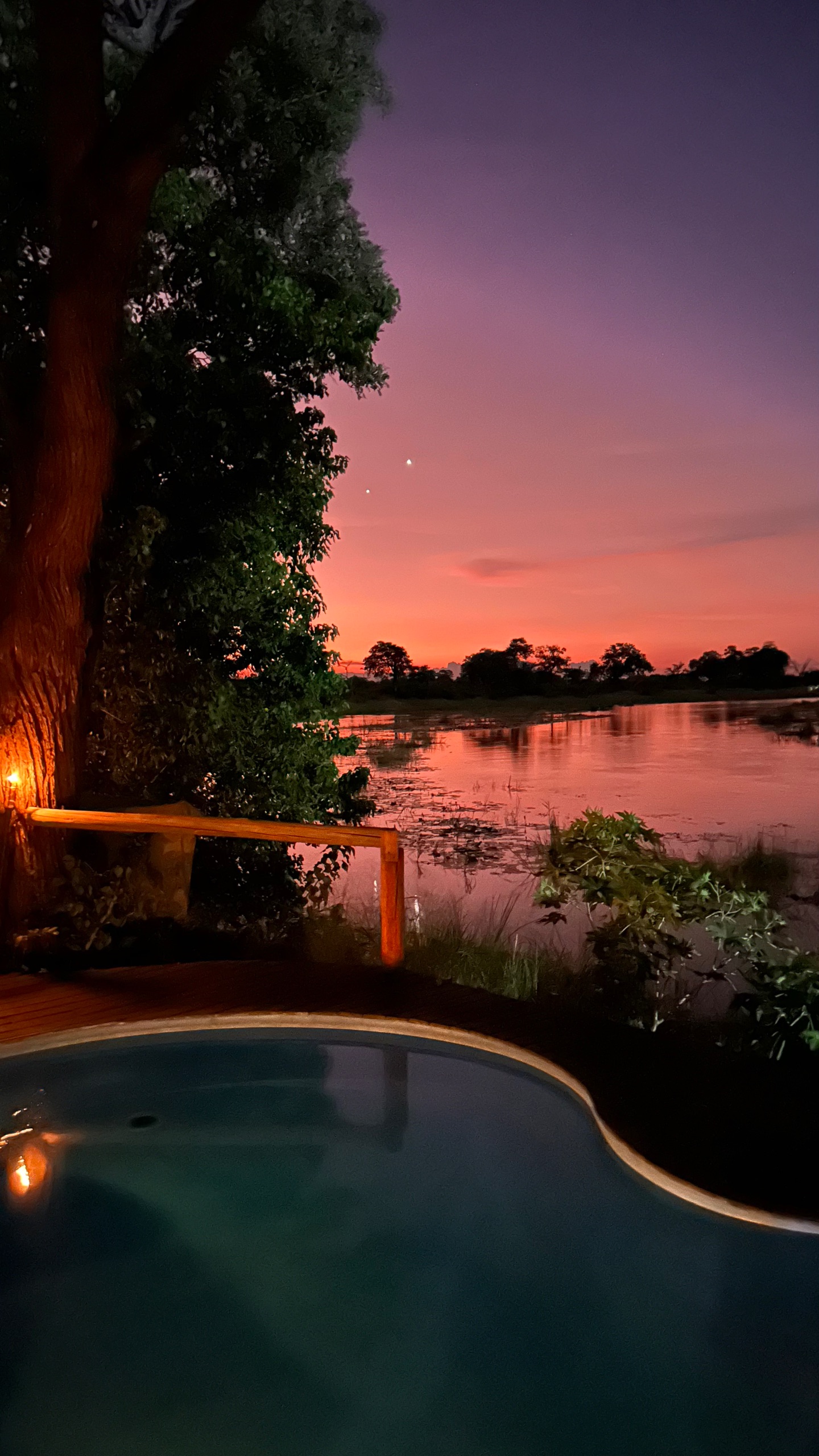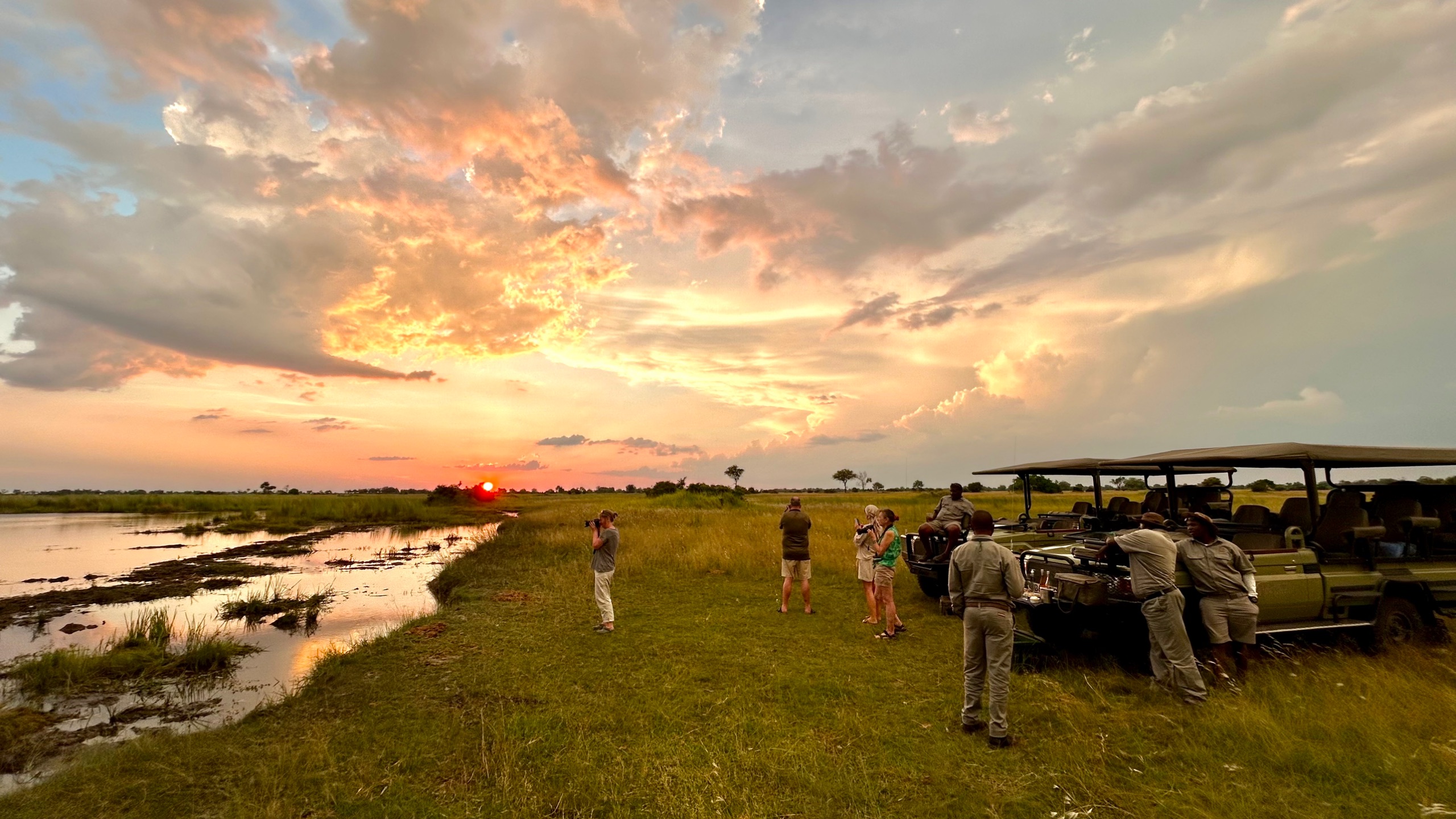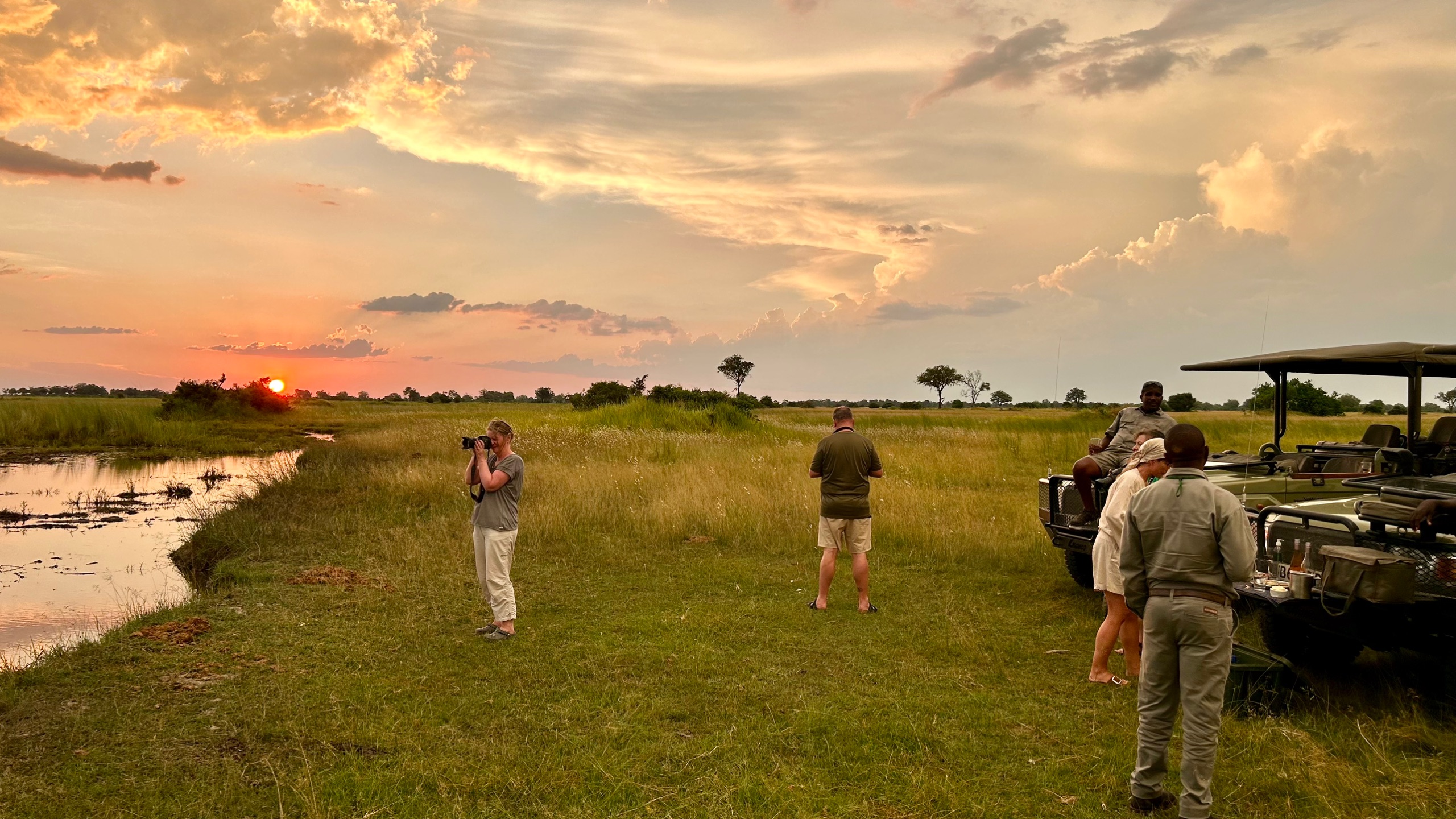 Nach zu intensivem Abend wartet der Sundowner im Camp…