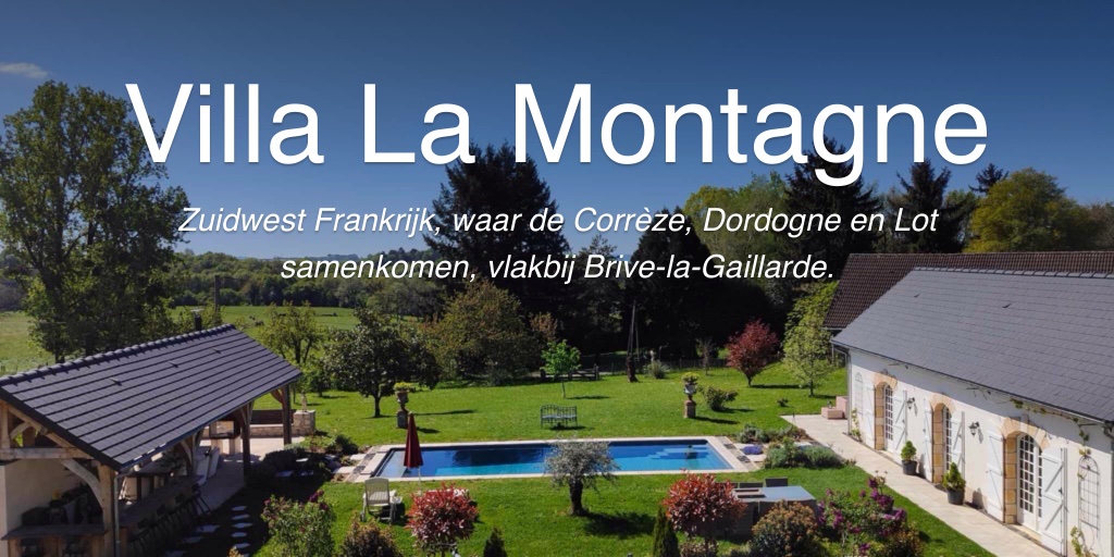 U vindt Villa La Montagne aan het einde van een doodlopende weg genaamd La Montagne dus er is heel weinig verkeer en het is hier rustig en stil, we zijn omringd door mooie natuur en het ligt heel prive en er zijn geen buren die bijvoorbeeld op het zwembad kunnen kijken of zelfs op de zwembadbar en zwembadkeuken. U zit er heel prive en rustig. La Montagne ligt in de Vallee de la Dordogne, op het kruispunt van de Corrèze, Dordogne en de Lot (binnen 20km afstand van deze departementen), het is dus een fijne locatie om alledrie die regio's te bezoeken.