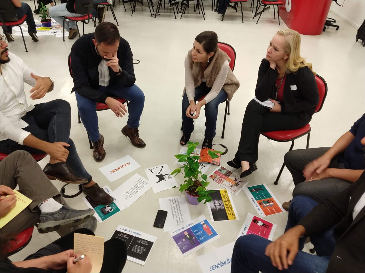 Convidados da roda de conversa no kick off: 1) Daniela Grelin (Gerente Senior - Instituto Avon); 2) Guilherme Nascimento Valadares (Editor-chefe do “Papo de Homem”, Membro do comitê #ElaspoeElas, da ONU Mulheres); 3) Flávio Urra – Psicólogo e sociólogo – “E agora José?” ?/ Fórum de Masculinidades do ABC; 4) Rodrigo Santini (Gerente de Missão Social de Ben & Jerry’s), 5) Thiago Amparo (Professor FGV), 6) Aldo Rodrigues (Votorantin); 7)Amanda (Engajamundo); 8) Thiago Arruda (Grupo Sagrado Masculino);
