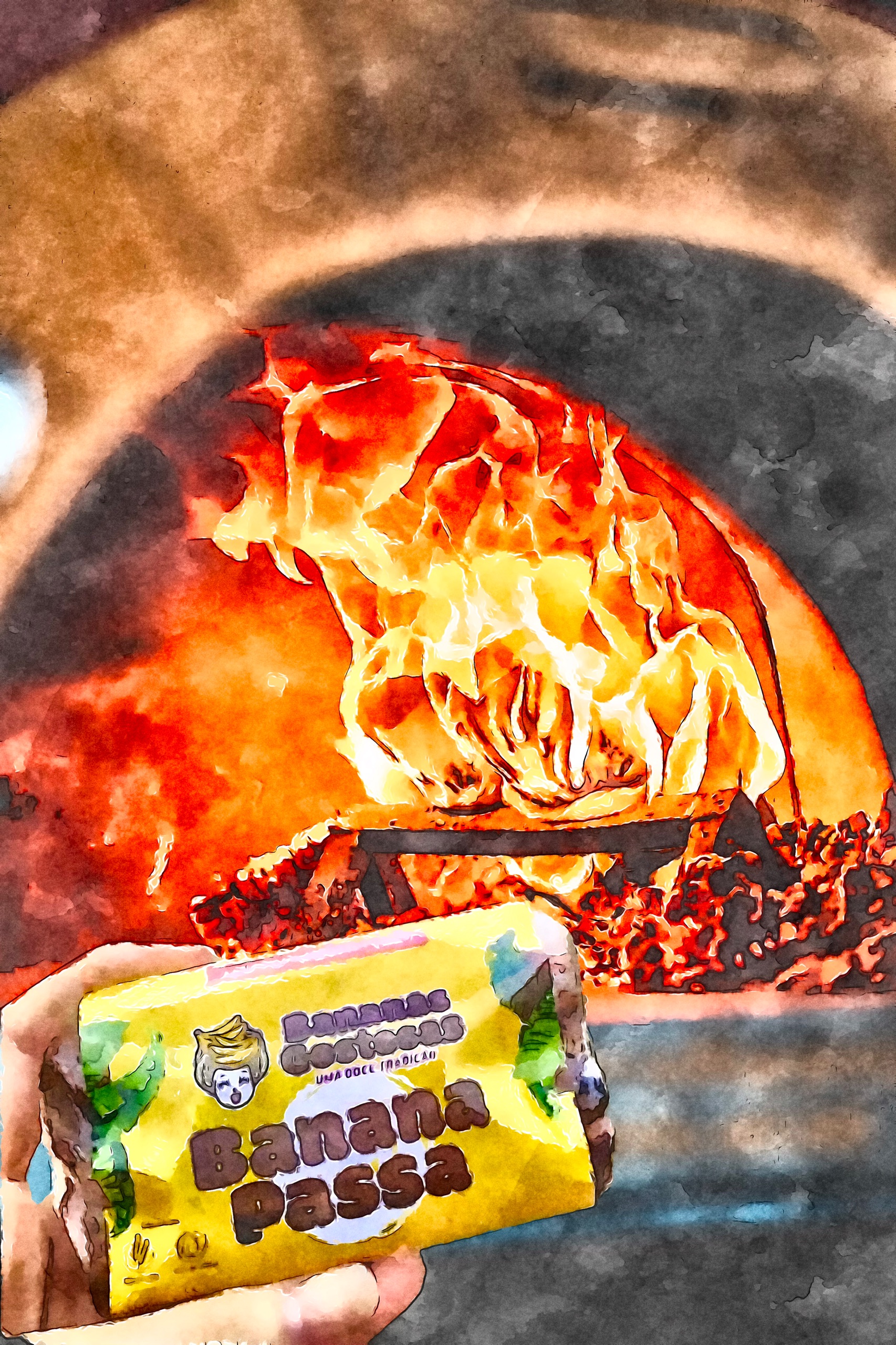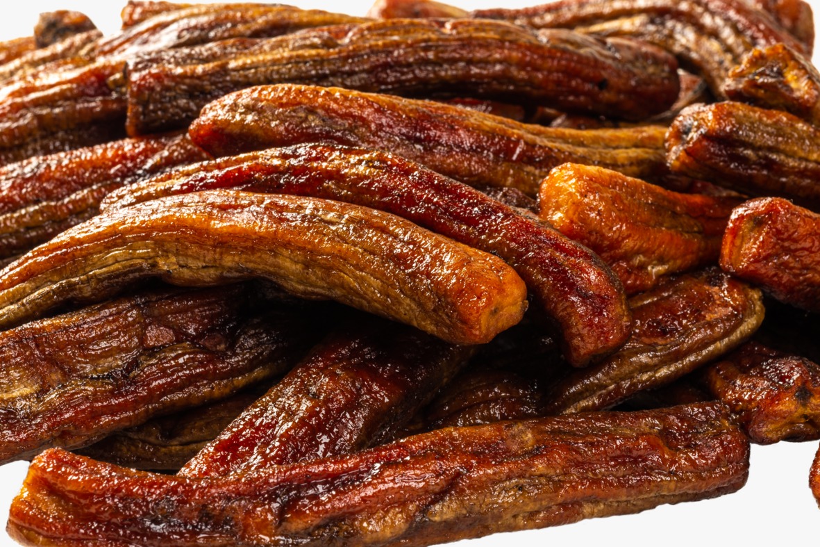 Sem calor muito brusco, a fruta vai avermelhando… lentamente, o açúcar vai se concentrando mais e mais… até a banana secar e virar o doce mais doce que qualquer outro.