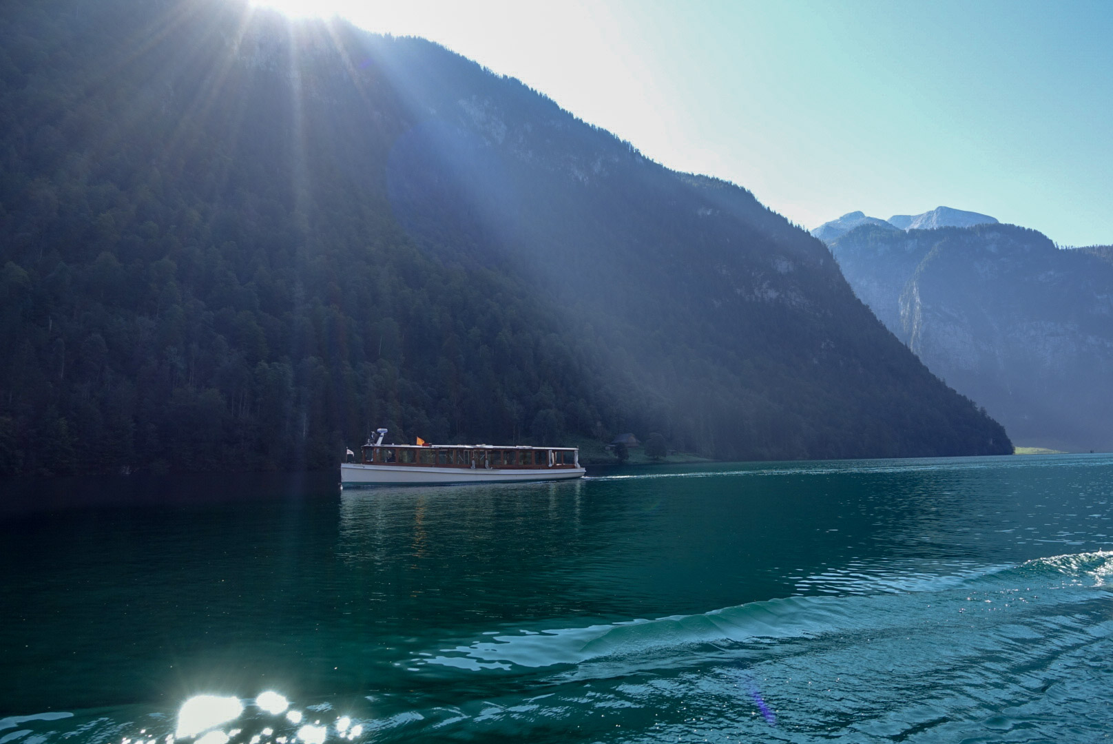 We headed down to Könginssee to officially complete our Bodensee to Könginssee Radweg trip and celebrated with a boat cruise on the very picturesque lake. Departing in low hanging clouds made for a dramatic and eerie atmosphere complete with a trumpet solo that echoed back each phrase at a time against the sheer rock faces that enclose the lake.