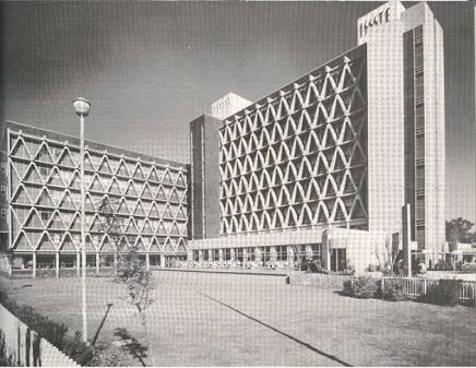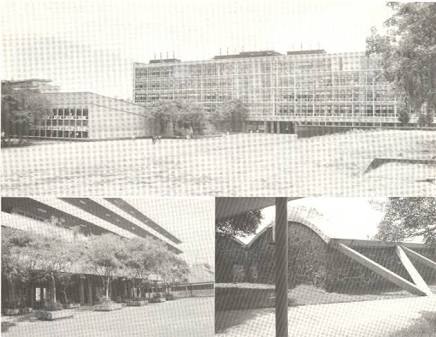 En el edificio principal de esta obra, mostrada en la imagen superior, Yáñez maneja una idea funcionalista de tal forma que la planta de abajo la deja totalmente libre gracias al uso de columnas, y deja una fachada totalmente acristalada. La luz natural se aprovecha totalmente ya que la ubicación del edificio se encuentra en una posición norte-sur.