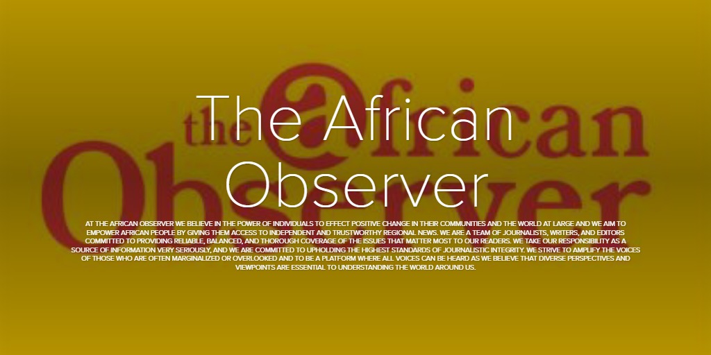 The African ObserverAt The African Observer we believe in the power of individuals to effect positive change in their communities and the world at large and we aim to empower African people by giving them access to independent and trustworthy regional news. We are a team of journalists, writers, and editors committed to providing reliable, balanced, and thorough coverage of the issues that matter most to our readers. We take our responsibility as a source of information very seriously, and we are committed to upholding the highest standards of journalistic integrity. We strive to amplify the voices of those who are often marginalized or overlooked and to be a platform where all voices can be heard as we believe that diverse perspectives and viewpoints are essential to understanding the world around us.