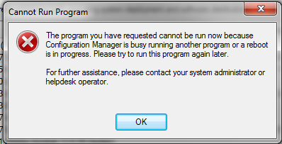 Remember, you can only run one program at a time in Run Advertised Programs. If you try to run another program before the preceding one completed, you will see this error: