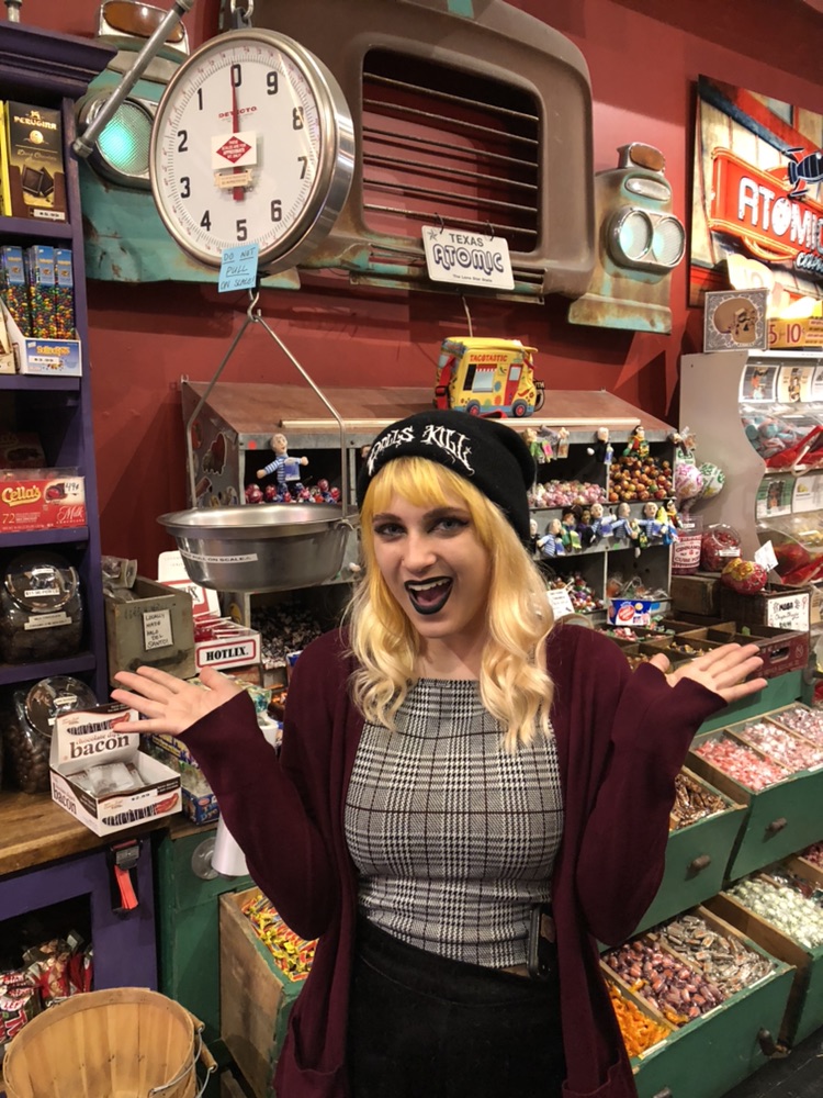 7:10 p.m.: Atomic Candy employee, Amy, says that today has been good for business. “Last year the weather was pretty bad on Halloween so not as many people came in,” she says. “A lot more people are coming in today.” #halloween #denton #untmojof18