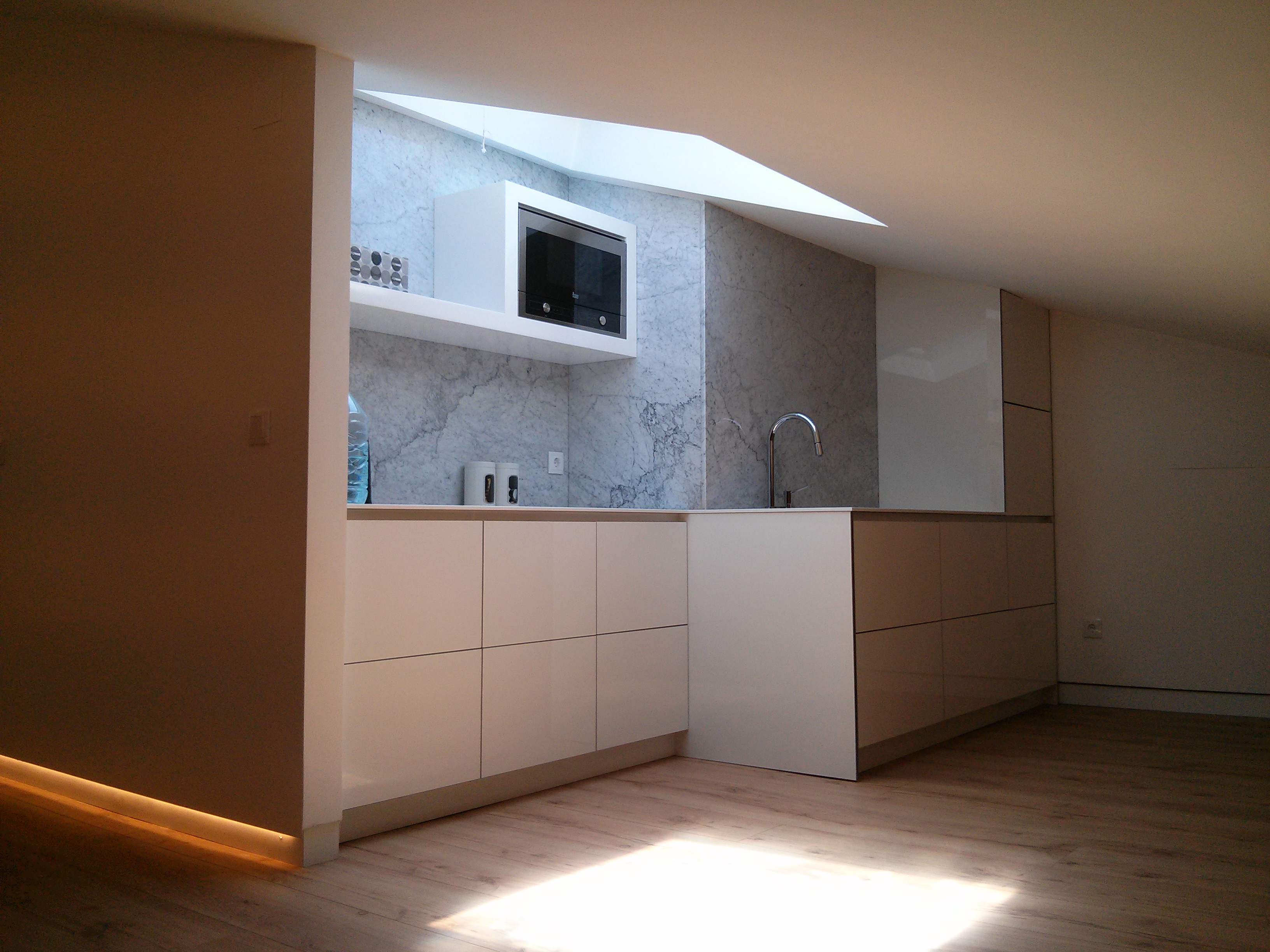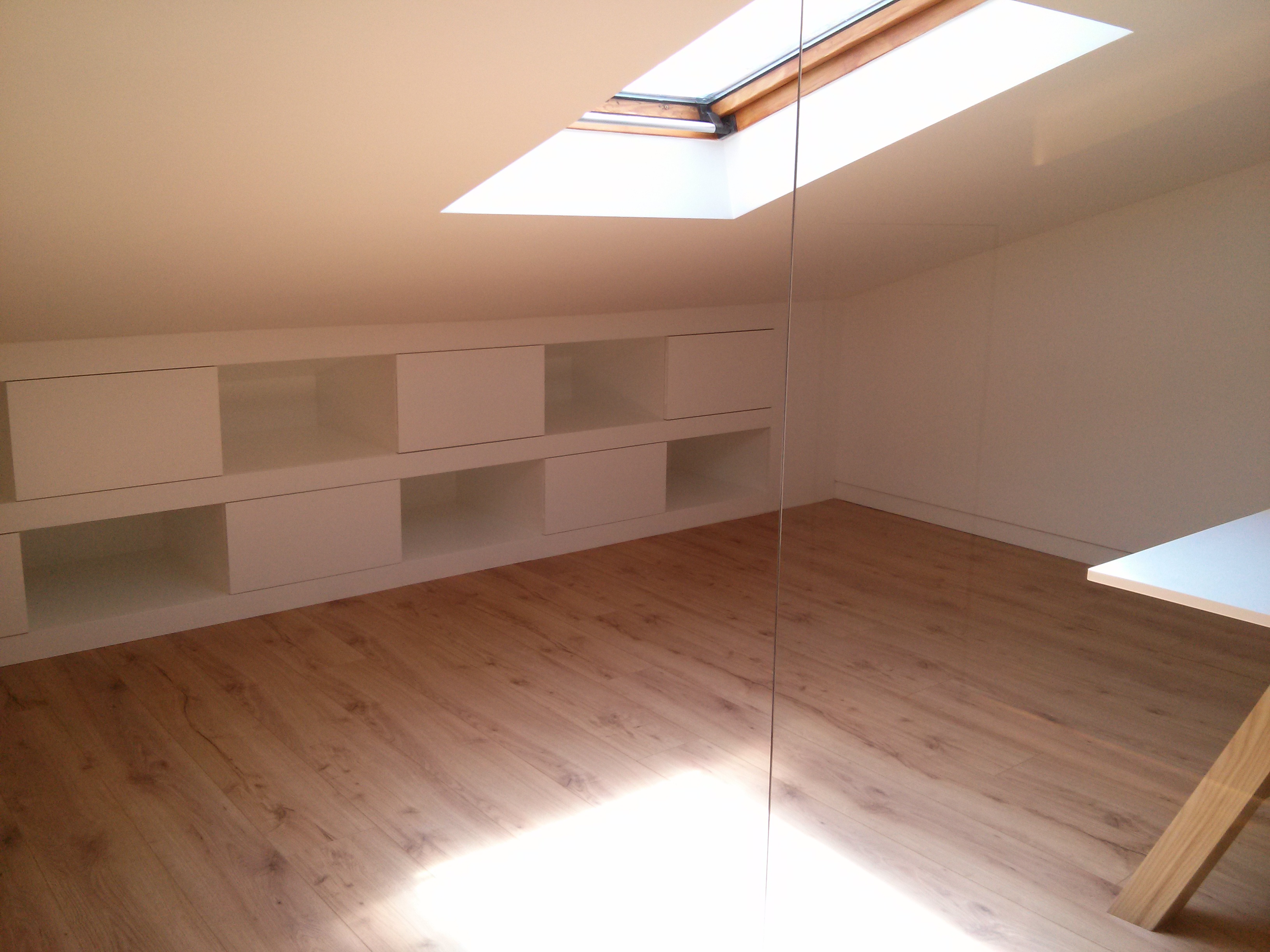 Como exemplo temos um projeto desenhado pelo atelier SPACEROOM home design, que nos deu imenso prazer em executar, um piso tipo sótão onde o espaço foi cuidadosamente divido, proporcionando um espaço de trabalho com bastante luminosidade e aproveitamento.