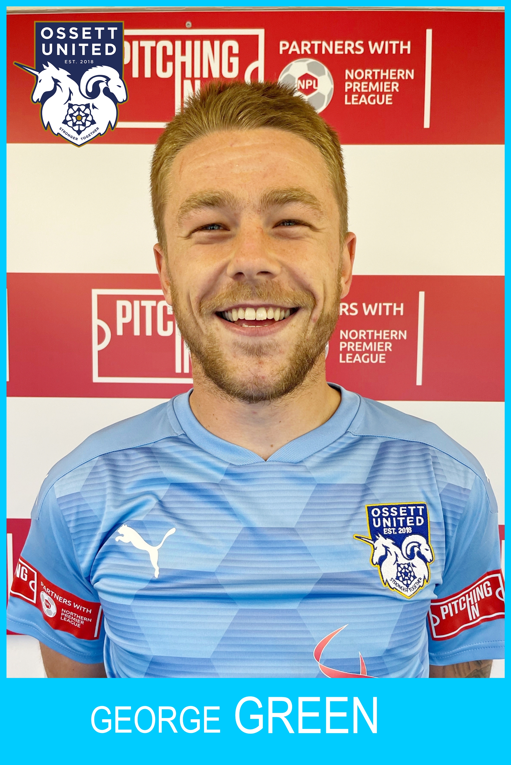 George Green brings professional experience to the Ossett United squad having been on the books of Bradford City, Everton, Oldham as well as Kilmarnock in Scotland and Norwegian side Viking. As well as International recognition playing for England u16, 17 and 18 sides.