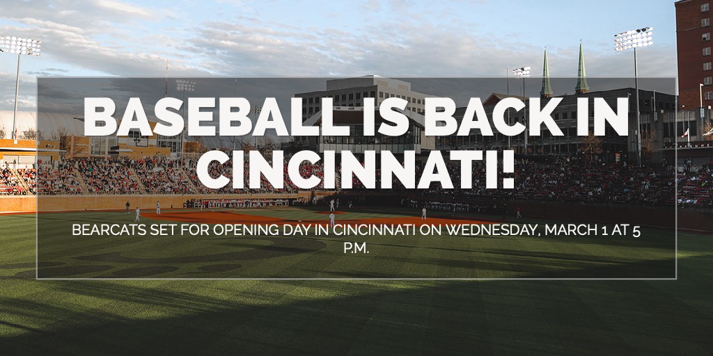 The University of Cincinnati baseball team opens its home slate against Miami (OH) on Wednesday, March 1 for Opening Day in Cincinnati. First pitch is scheduled for 5 p.m. at UC Baseball Stadium.