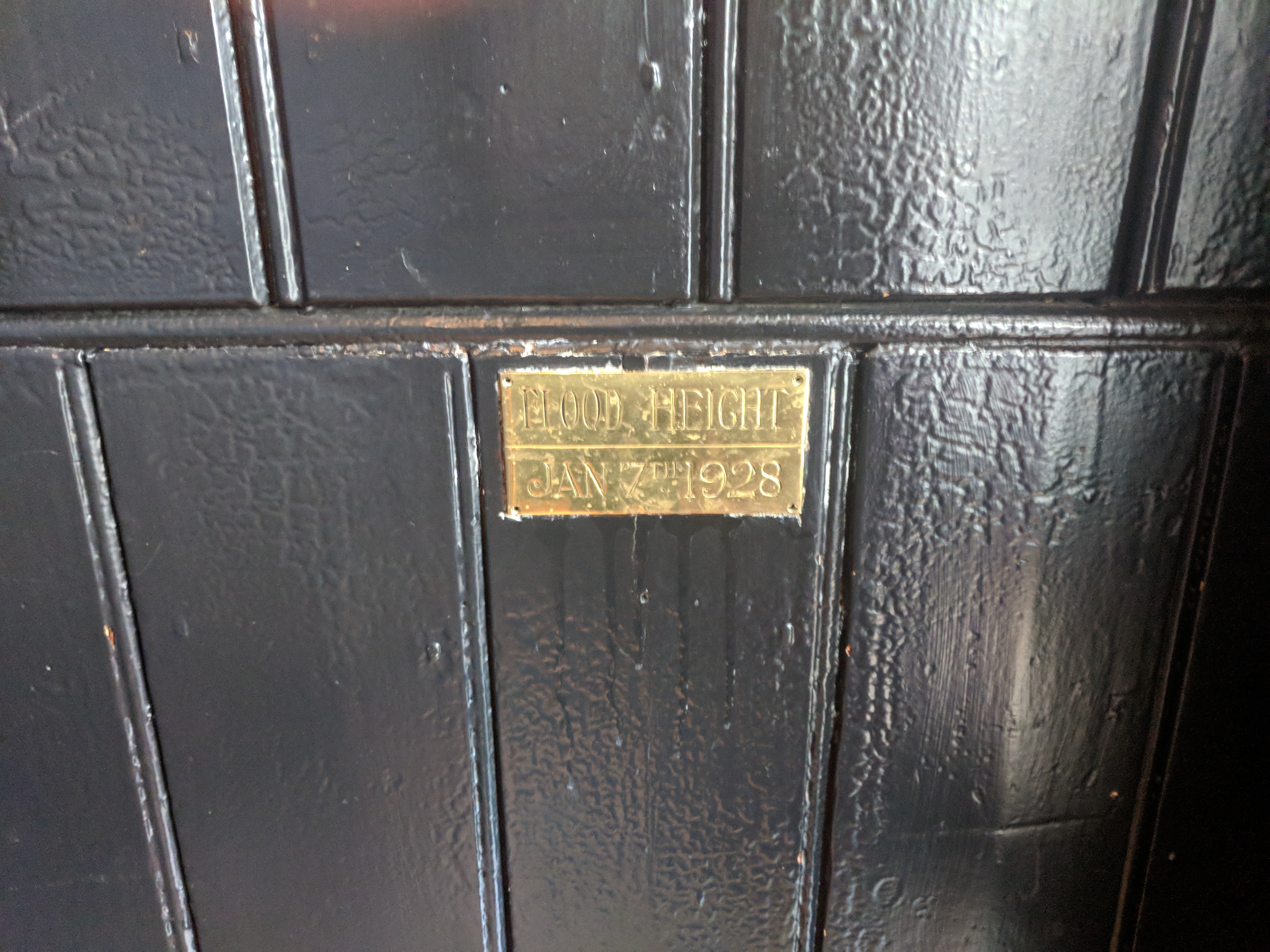 We’d noticed how high the river was, which makes the “floods in 1920-odd reached here” mark a little worrying. Maybe we should skull this booze and get going. I’m actually surprised at how big this smallest room is, and it’s in no way cramped when an old geezer perches alongside us at the other end of the bar.