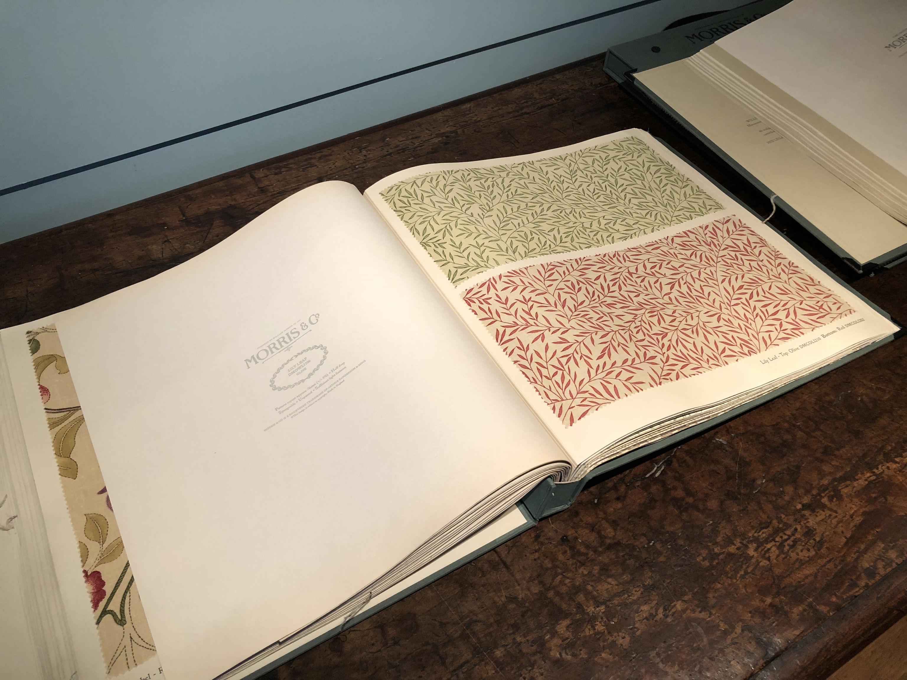 Giant Morris & Co wallpaper pattern books keep Helen’s attention for a good while.
