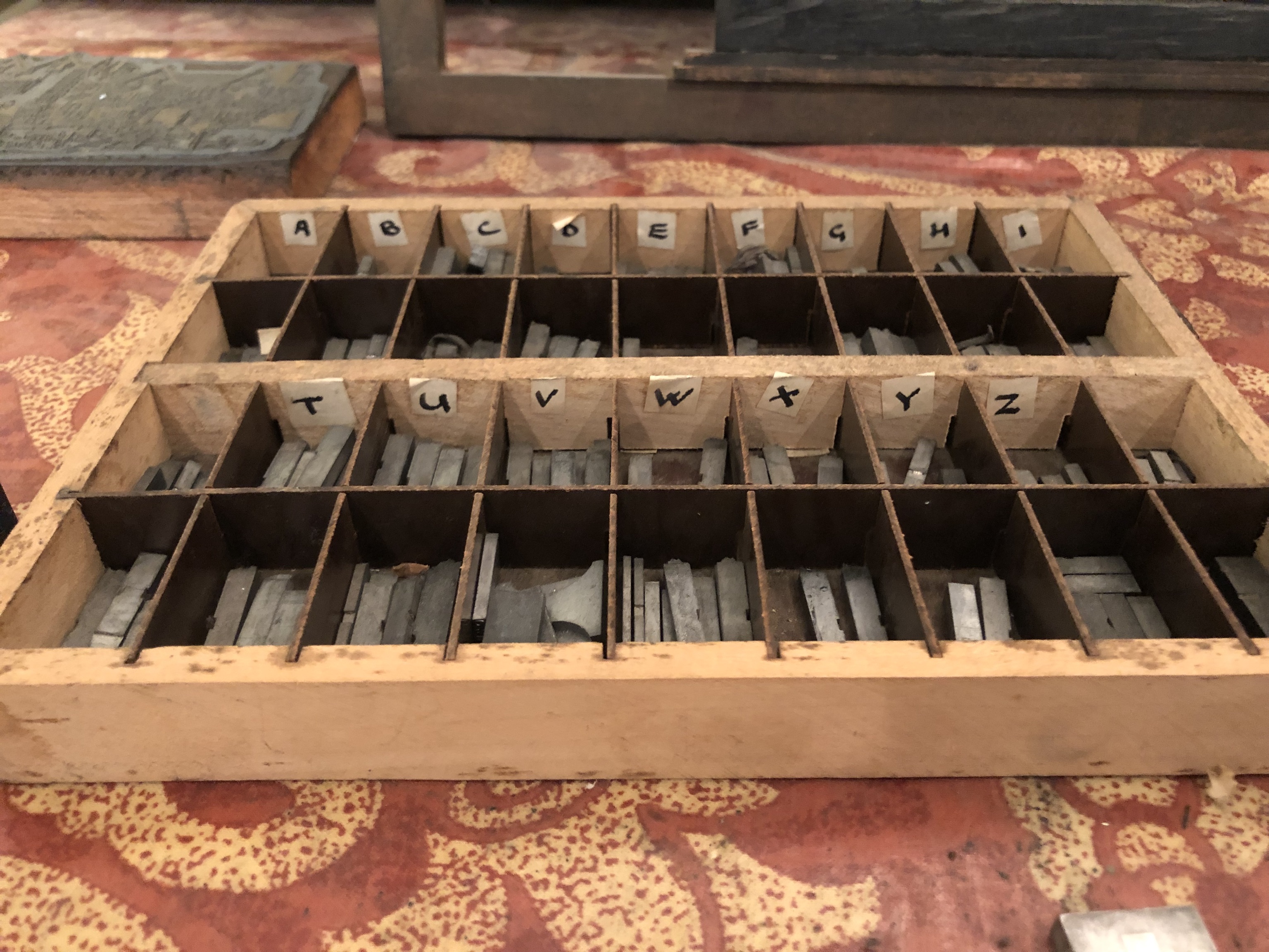 Back in the Phone Room we get our bags back and are on the verge of buying a Dove typeface tea towel, with a capital T and everything else in a block. T towel, see? Julie, the guide, tells us Cobden Stephenson would be horrified and that totally puts us off buying one, so instead we get some notelets and envelopes, and bugger off.