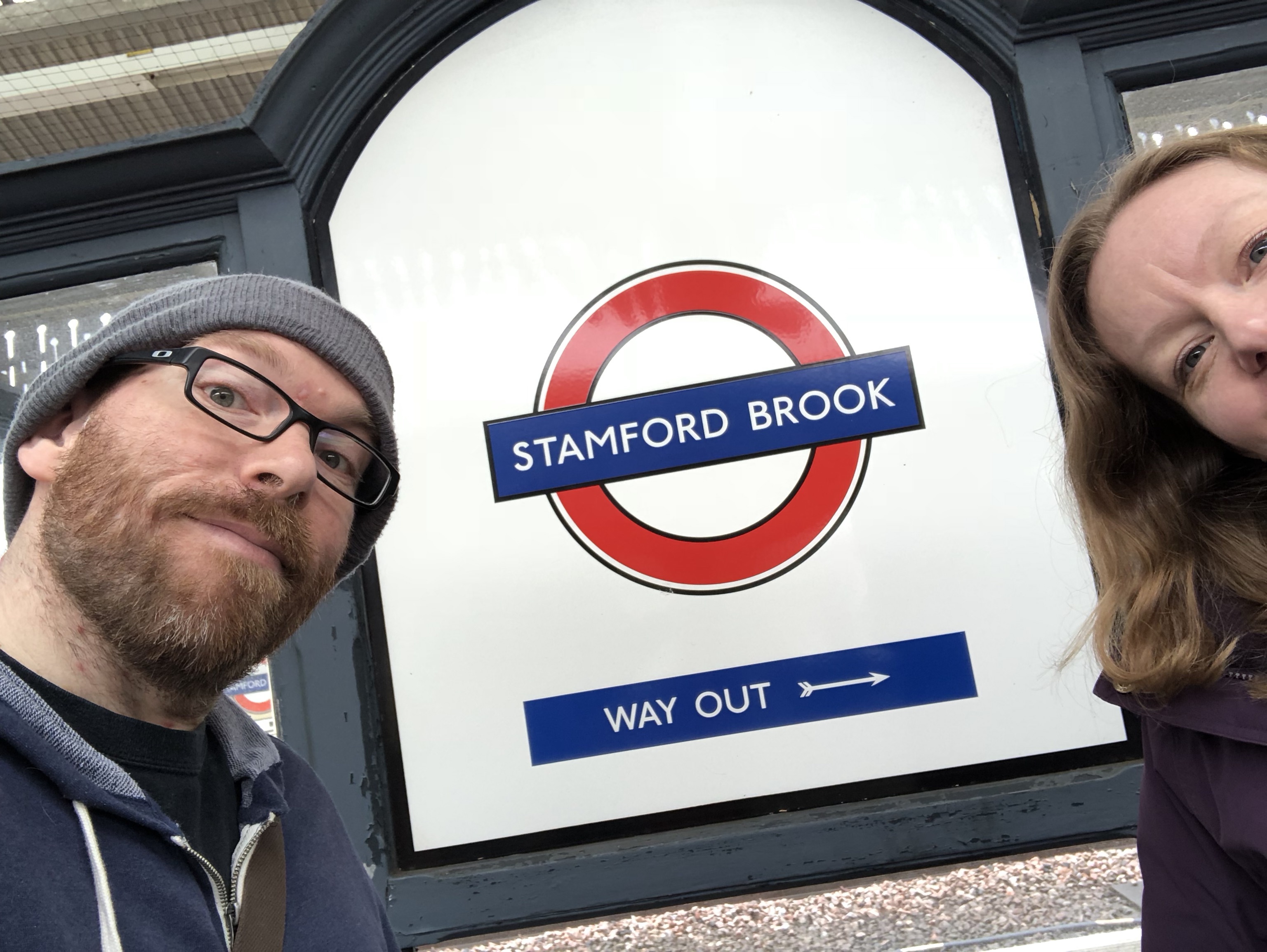 At Earl’s Court we admire the wonderful old destination board still in use, and hop across to the “westbound” platform. I have a problem with Earl’s Court describing the district line as only east- and westbound, given trains from here go east, west, north and south. But whatever. There’s a service waiting for us and a few stops later we decant ourselves above the streets of Stamford Brook.