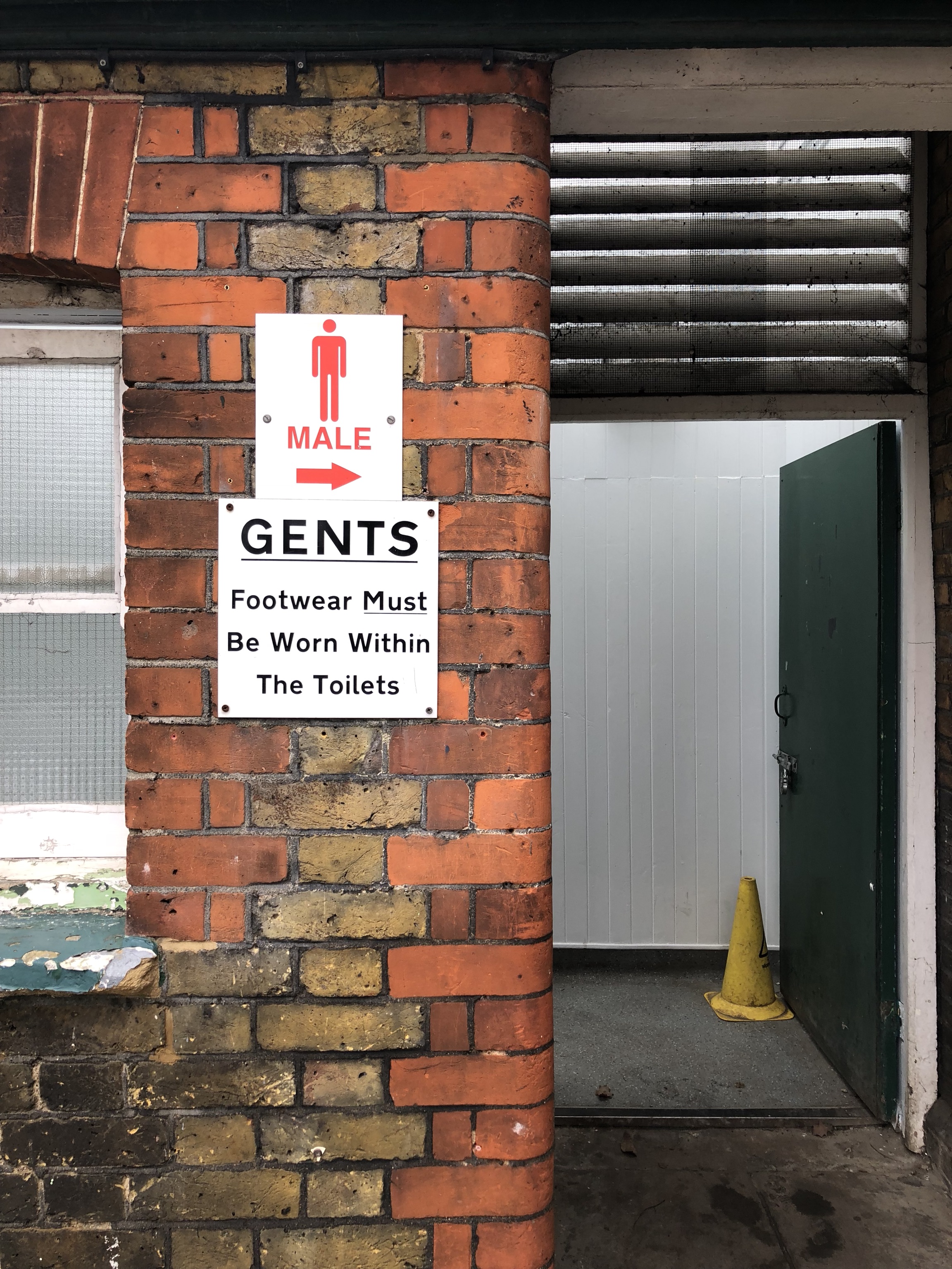 I mean, like, on the one hand no-one sane needs to be told this – and if you’re stupid enough to go barefoot into a public gents loo then you deserve what you get. I kept my shoes on.