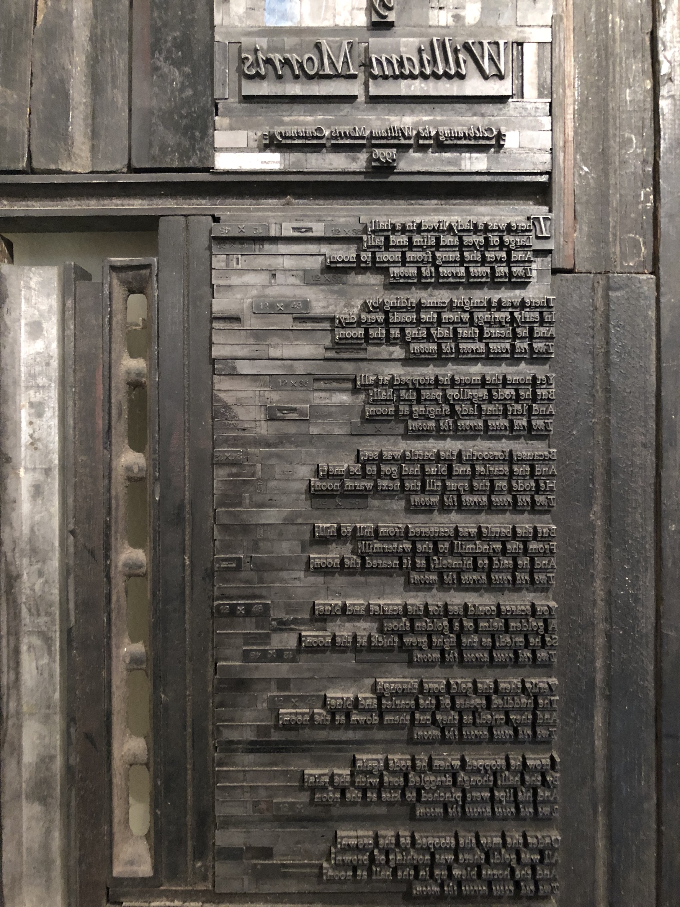 We’re not there for long, because the next item on our itinerary is only a five or so minute walk away. Past yet another fucking blue plaque, we’re at the William Morris society. Told you he and Walker were near neighbours; next door to Morris’s Kelmscott House, it’s a small exhibition of a bit of his stuff including the original and still working printing press (there’s a much bigger William Morris thing up in Walthamstow).