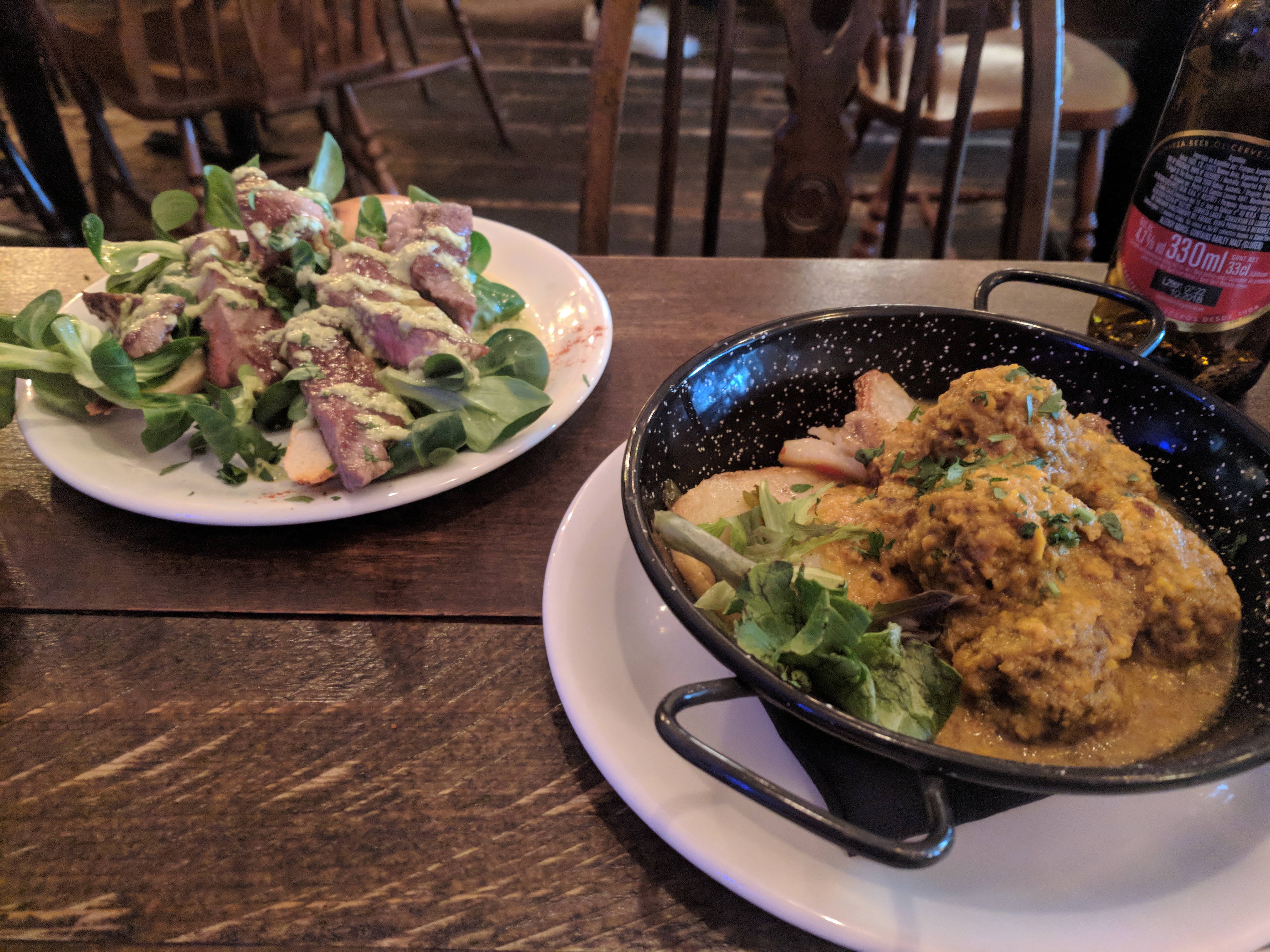 It’s a fairly cavernous place, with about 10 or so other punters but virtually every table has a “RESERVED FOR xxx AT yyy” piece of paper on. Seriously something like 90% of all seating in here was reserved from 7pm or so onwards. Never seen such a thing. But as it was only 5.30pm it didn’t matter to us. Man City ran riot over Everton while we drank, and just as a family arrived to take up their reservation next to us we buggered off.