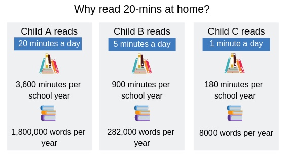 Enjoy the books they choose - silly characters, fun illustrations, wacky plots - encourage your children to talk about books even after they have been put down. If you can, encourage your children to read at least 20 minutes every day. Busy families can find extra time to read when in the car on the way to and from clubs, while having breakfast, 10 minutes before 'lights out' or by playing audio books on longer journeys.
