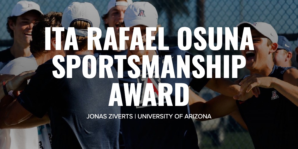 Jonas Ziverts from the University of Arizona has been named the 2023 ITA Rafael Osuna Sportsmanship Award winner.