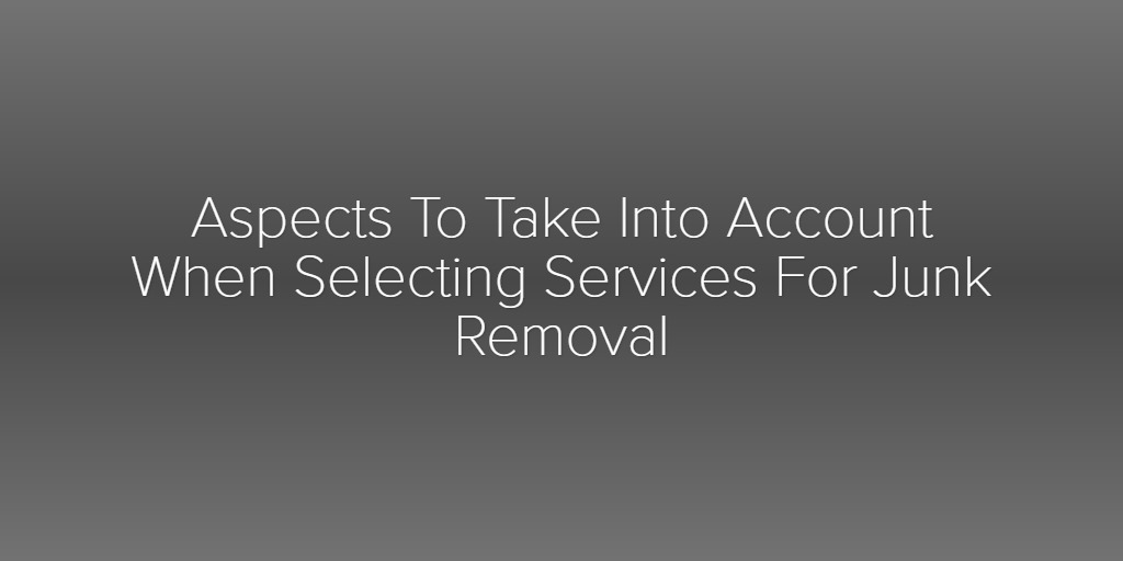 Aspects To Take Into Account When Selecting Services For Junk Removal