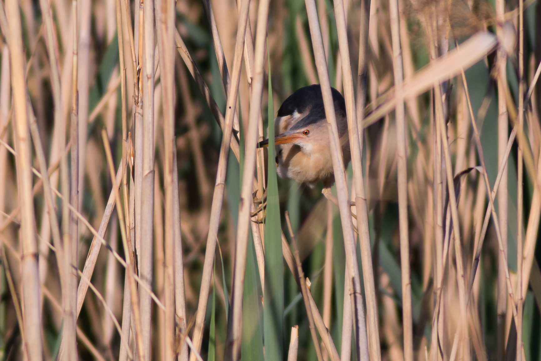 The Right hand side of the hide is obscured by the reeds. You can see warbler scurrying around in the thickets, but it's not really great for photography.