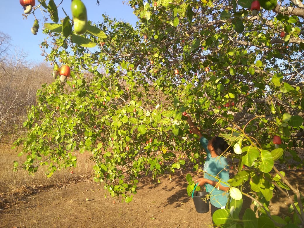 No período de seca, os cajueiros se enchem de frutos, e mesmo quem está acostumado não se cansa de tanta beleza.