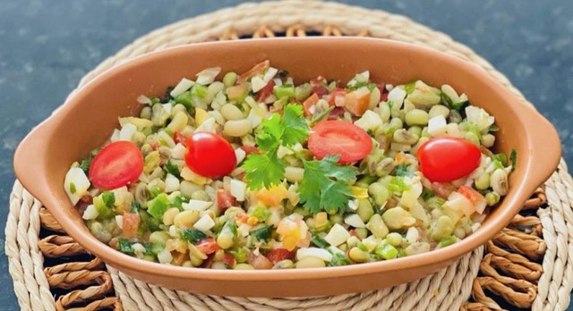 sugestão de consumo: Salada de feijão verde com ovos cozidos e queijo coalho
