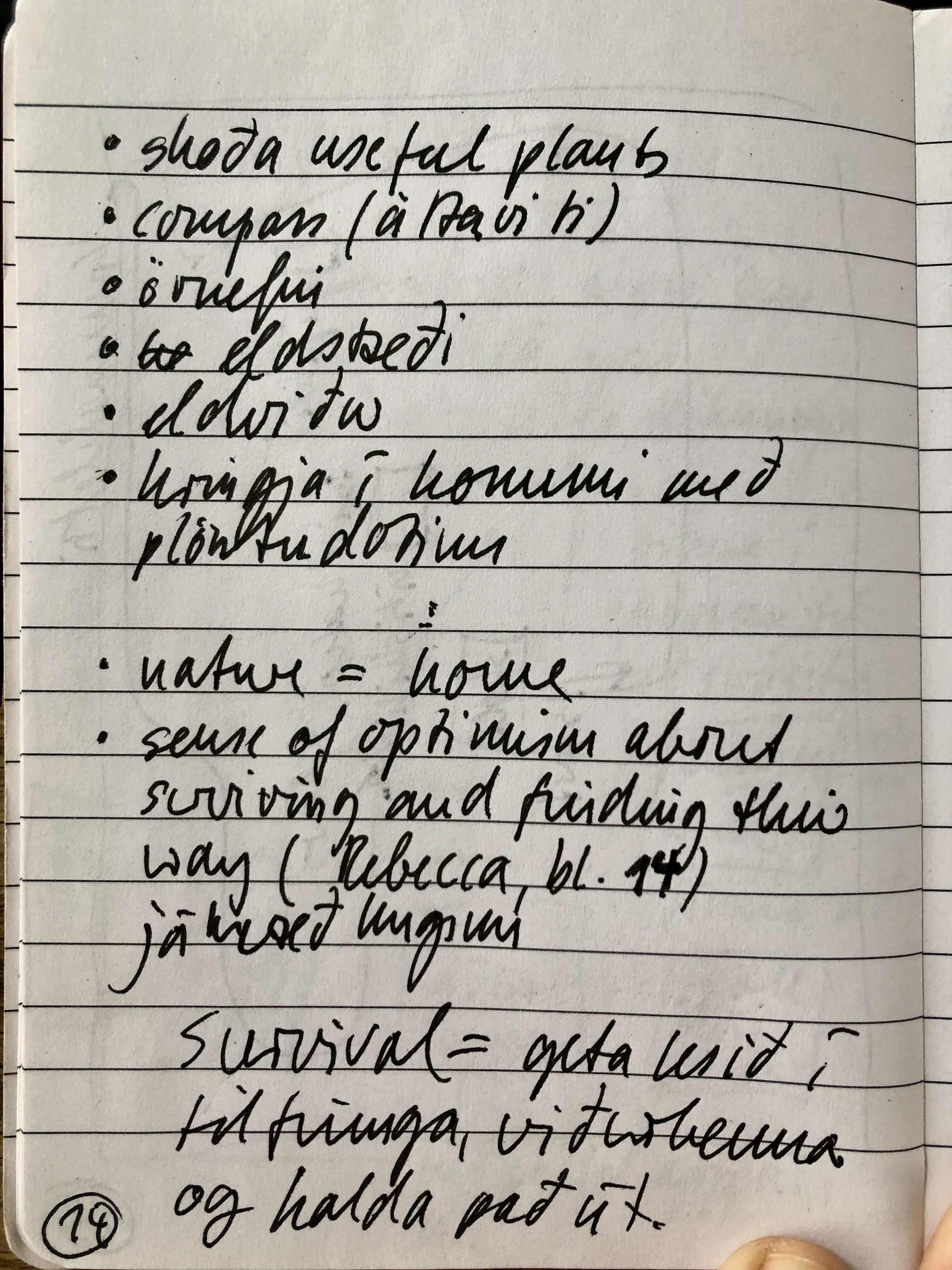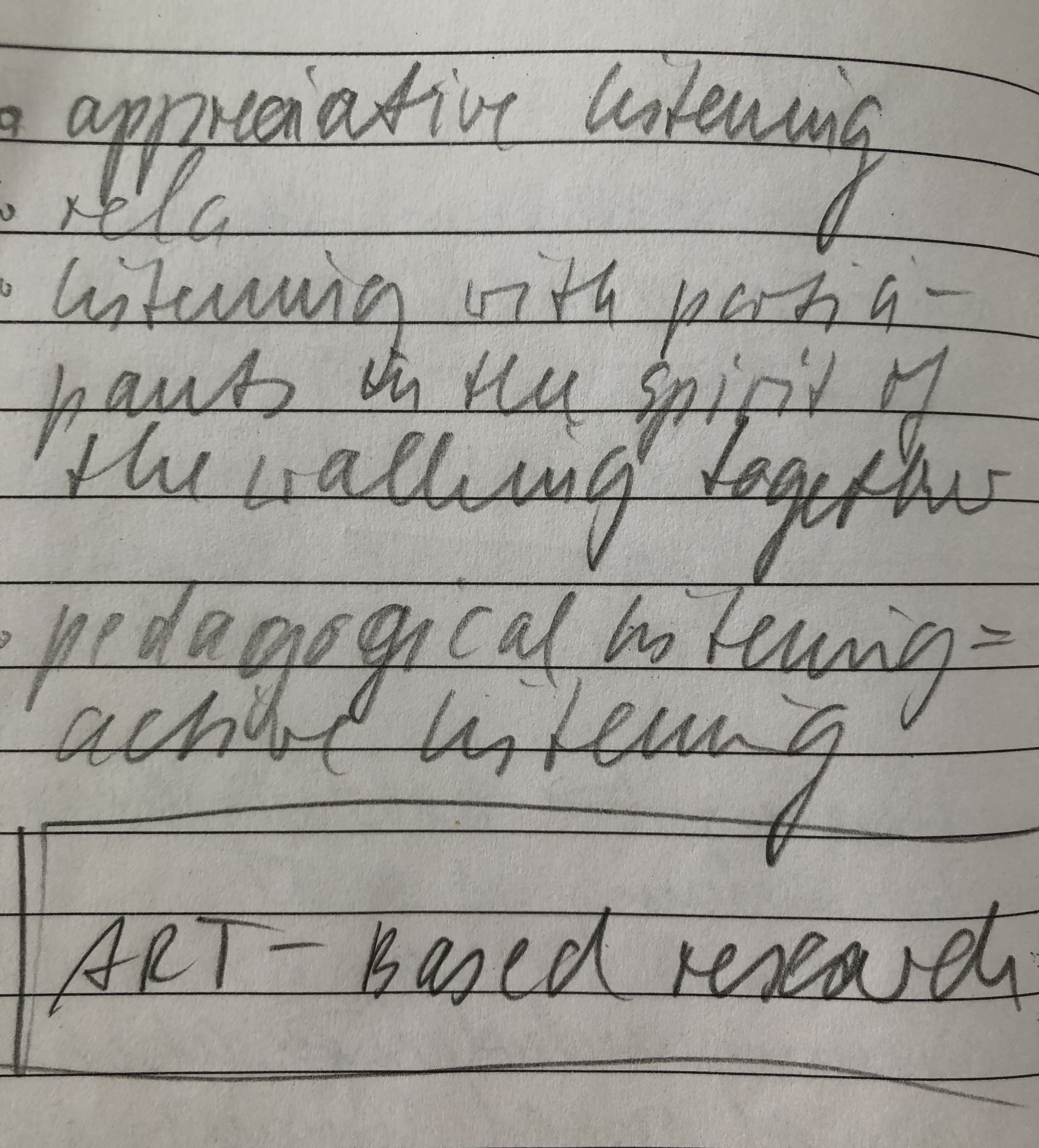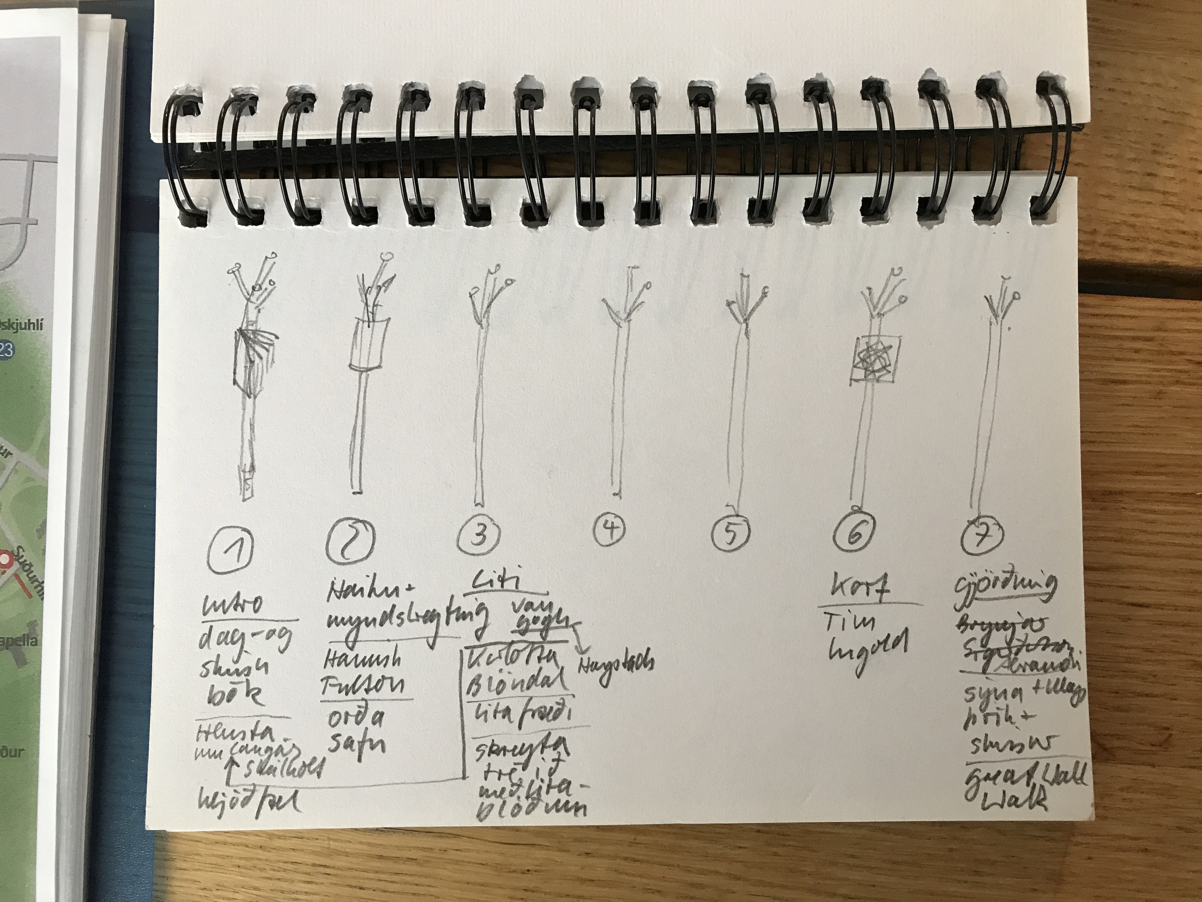 Ég hef fundið svar við spurningunni sem ég hef lengi verið með, um hvað er hægt að gera með alla fegurðina í kringum mig, landslagið sem ég geng um þrísvar á dag með hundinum minum. Í þessum áfanga listir og göngur hef ég geta aflað mér smá innsæi í heim göngulistamanna og fengið verkfæri til að geta unnið með göngur sem listamaður og kennari. Nú á ég eftir að lesa meira og halda áfram að gera tilraunir, aðallega tengð kennslu á grunnskólastigi og í ferðaþjónustu.