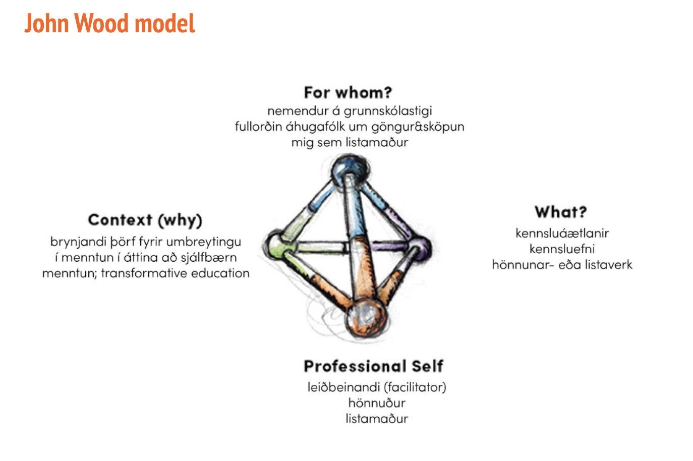Listkennsla á grunnskólastigi er með það lykillhlutverk að bjóða upp á vettvang þar sem nemendur geta rannsakað, skapað, greint og verið gagnrýninn, geta upplífað sig sem jafnan hlut af menningaumhverfinu sinu, eiga val, geta tekið þátt og geta jafnvel sett fyrirmæli fyrir sinn lærdóm. Gönguverkefni henda vel til þess að tengja bekkir þvert yfir árganga og fög (sjónlistir, textíl, smiði, heimilsfræði, náttúrufræði, samfélagsfræði, stærðfræði, læsisefling, íslenska og erlend tungumál. Fyrirbæri sem menntunarvísindamenn hafa rannsakað og mæla með í því samhengi er menntun sem er: