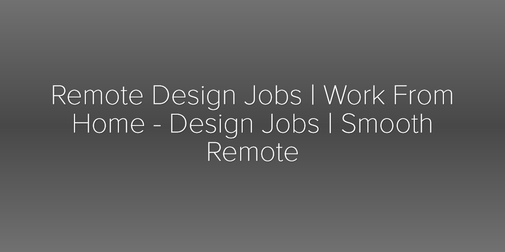 Remote Design Jobs | Work From Home - Design Jobs | Smooth Remote