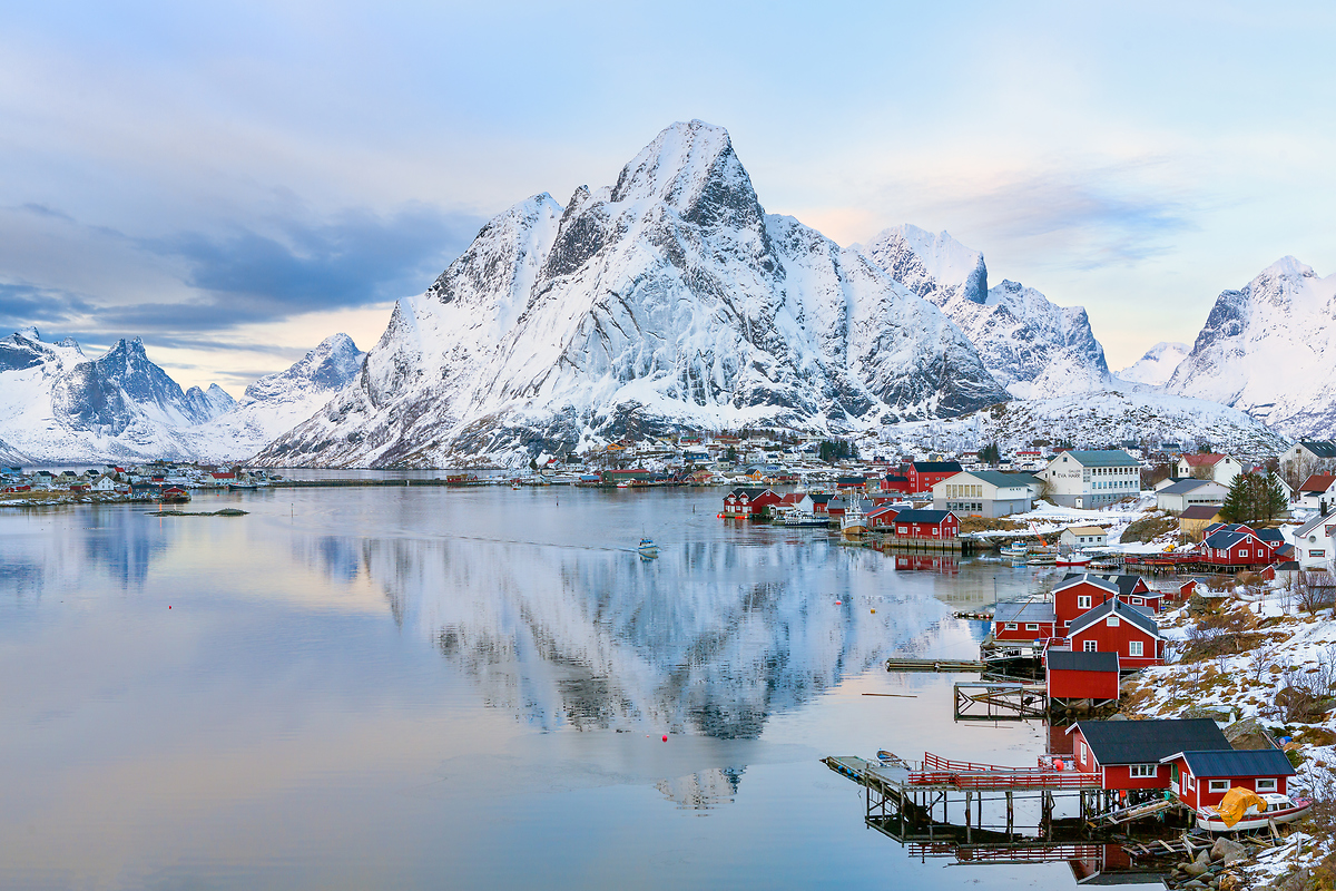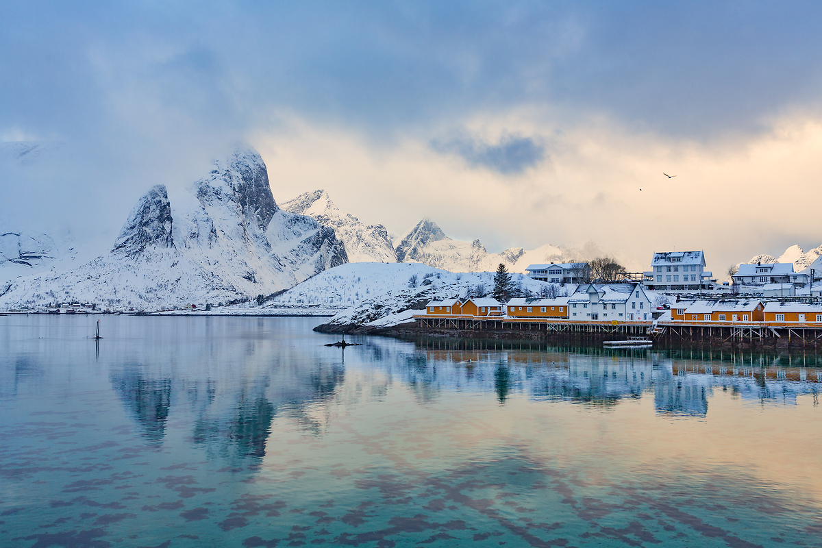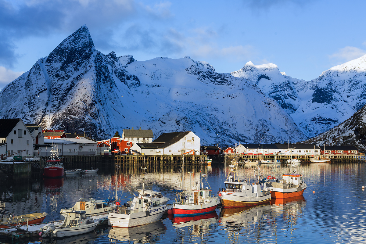 罗弗敦群岛最招人的地方是一个叫做雷纳的小渔村以及它周边的几个小岛和渔村。这里的山峰特别突兀有型,传统渔家式样的客栈色彩鲜艳,在峡湾边错落有致。海水清澈见底,小渔船的色彩和形状都十分可爱。日出、日落、晴天、雪天,这里都美如画!