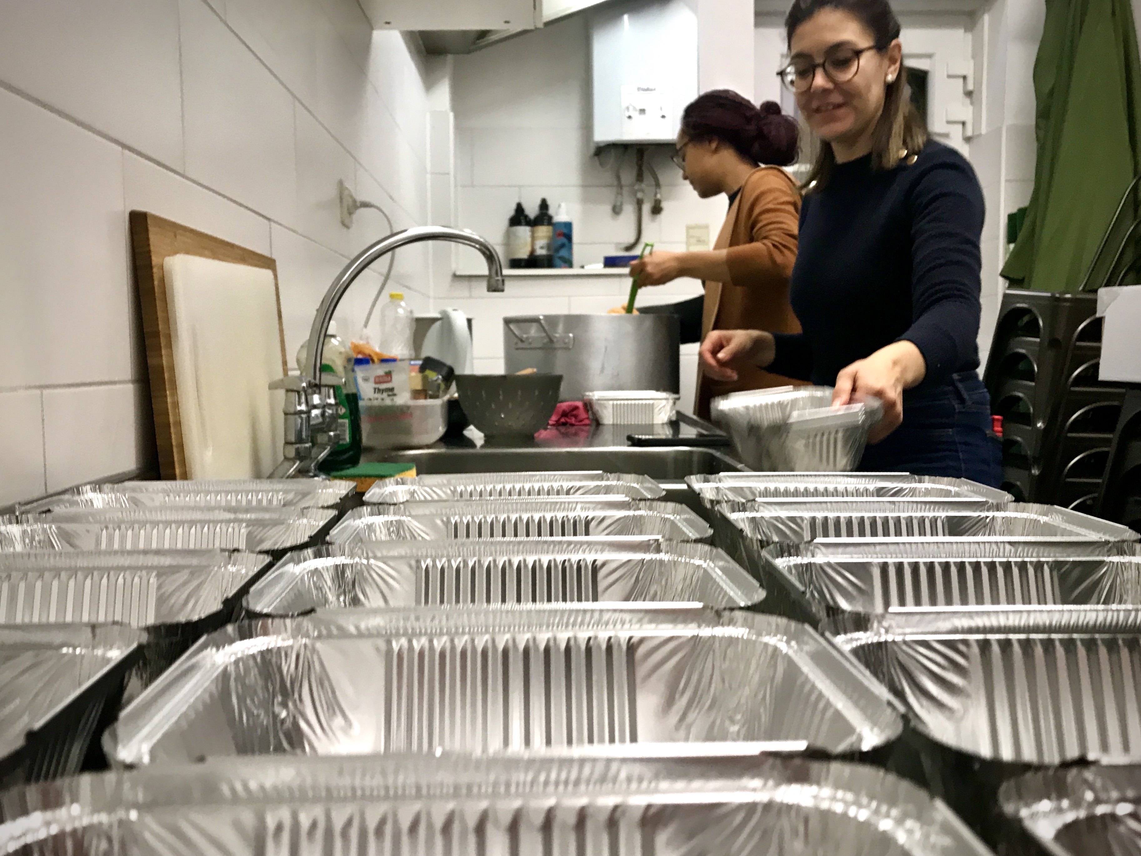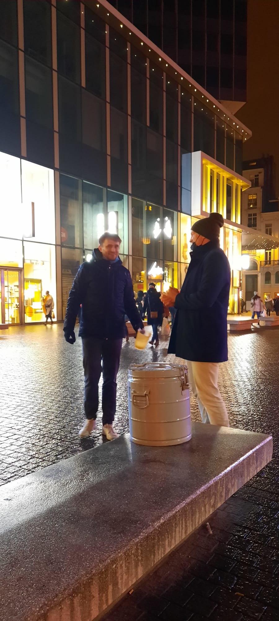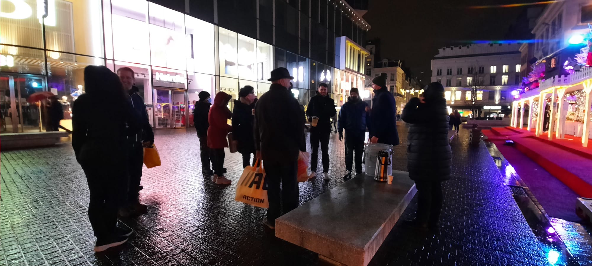 En plus de notre sortie hebdomadaire, nous organisons trois soirées de service aux sans-abris, ouvertes à tous. Avec plusieurs volontaires, nous allons dans le centre-ville de Bruxelles distribuer des repas, des boissons chaudes et des vêtements.