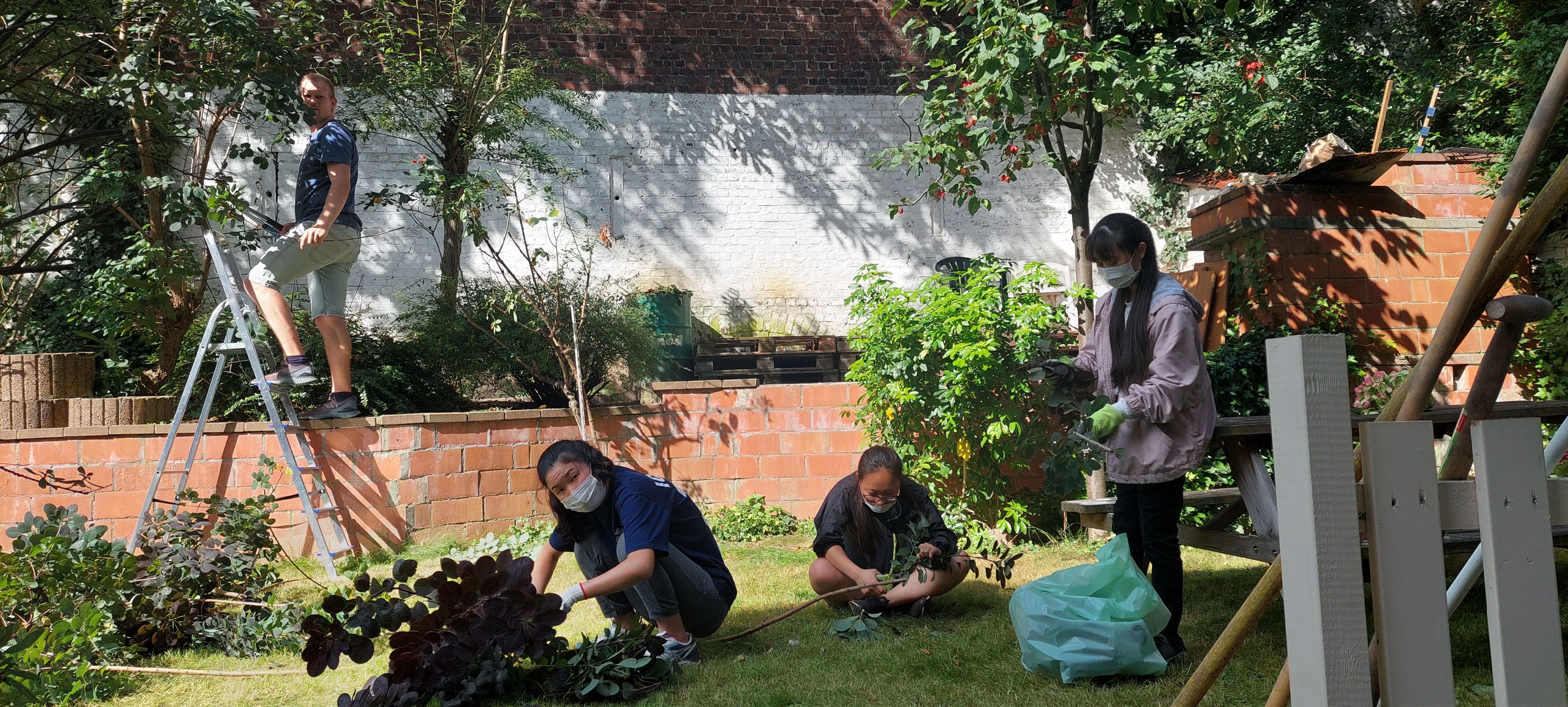 Nous continuons aussi les travaux dans notre bâtiment, où il y a toujours quelque chose à faire ! Nous recevons des étudiants de ISB (International School of Brussels) qui viennent régulièrement durant une journée pour nous aider. Ensemble nous faisons de la peinture, du nettoyage, du jardinage, etc. C’est l’occasion pour ces adolescents de découvrir notre base et notre travail, et pour nous de témoigner de Jésus et de faire une différence dans leur vie.